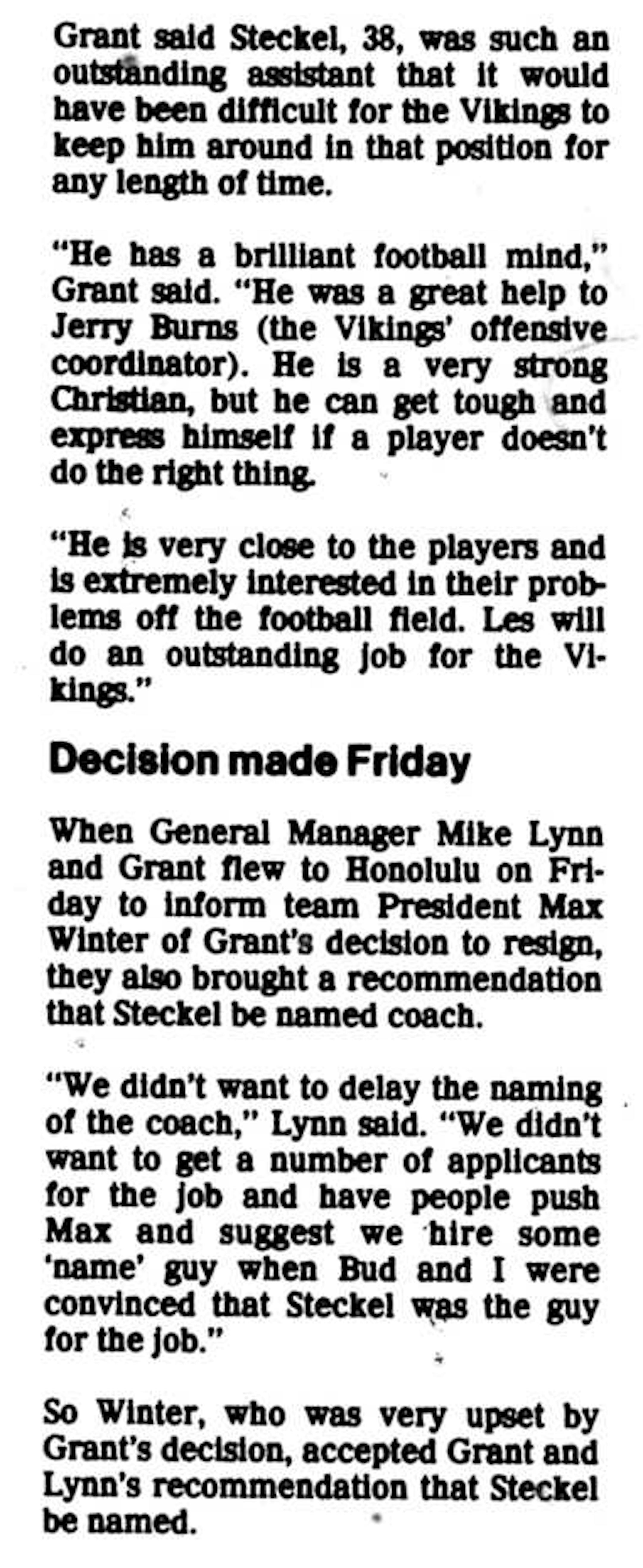 Conclusion: That was a very bad team. Maybe not 100 percent terrible as evidenced by their first 10 games, but certainly very bad. And lest we foist all the blame on Steckel, please don't forget that he had the personal stamp of approval from Bud Grant himself, Per a Sid Hartman column from Jan. 29, 1984 (the new microfilm machine is getting a workout today, and it is awesome, by the way):