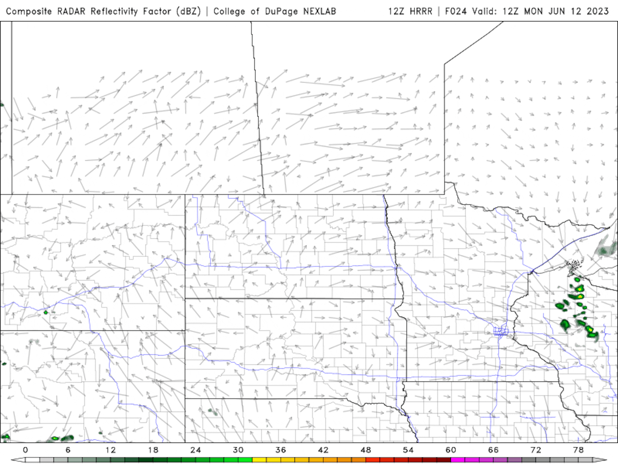The weather outlook for the Twin Cities on Monday, June 12th shows sunny and dry weather conditions with highs approaching 80F, which will be close to average for this time of the year. We'll also see breezy NW winds through the day as well.
