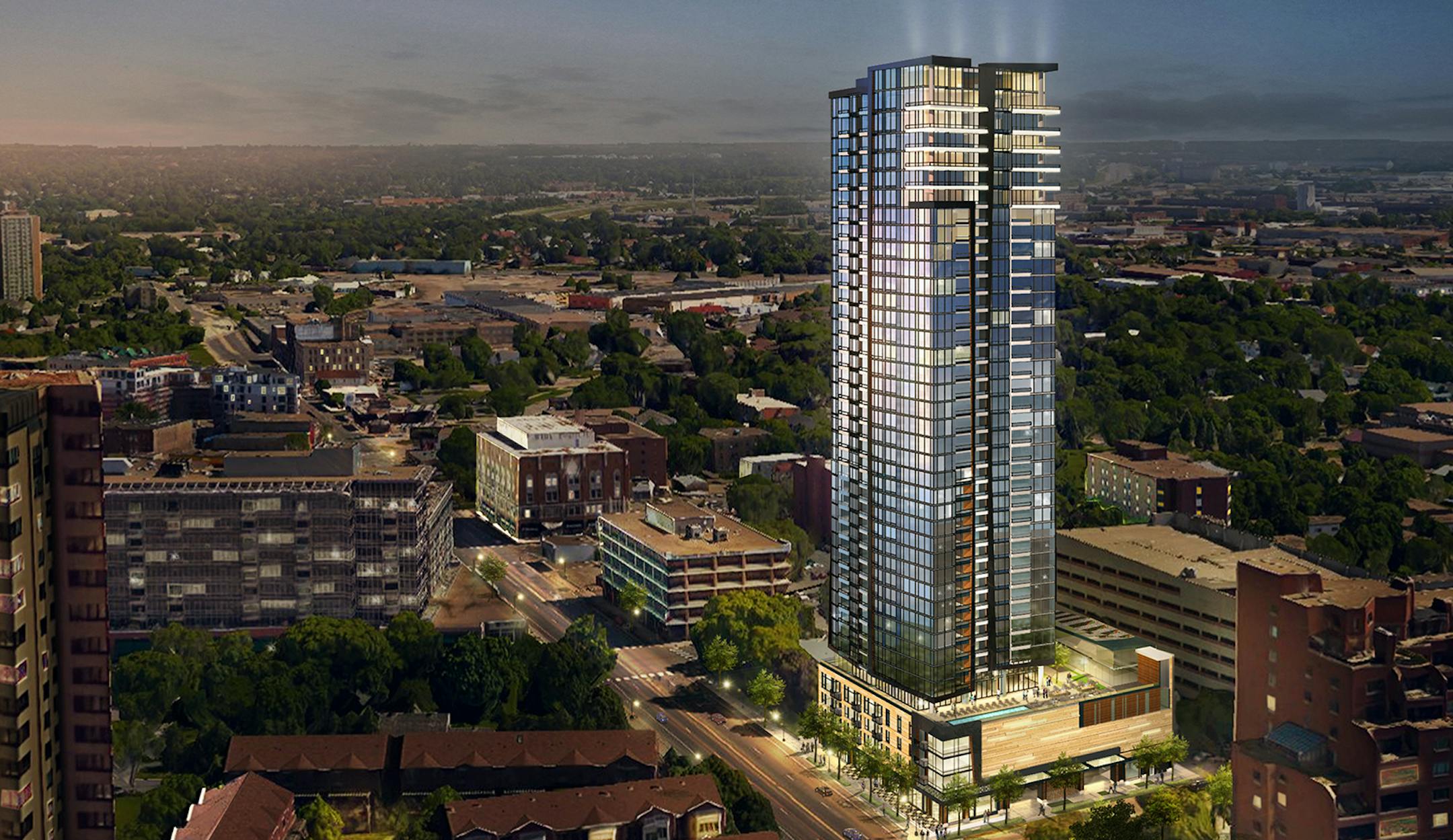 Alatus LLC has been working on plans to build a 42-story condo tower overlooking St. Anthony Falls across the Mississippi River from downtown Minneapolis and had planned to demolish a former funeral home to make way for the project.