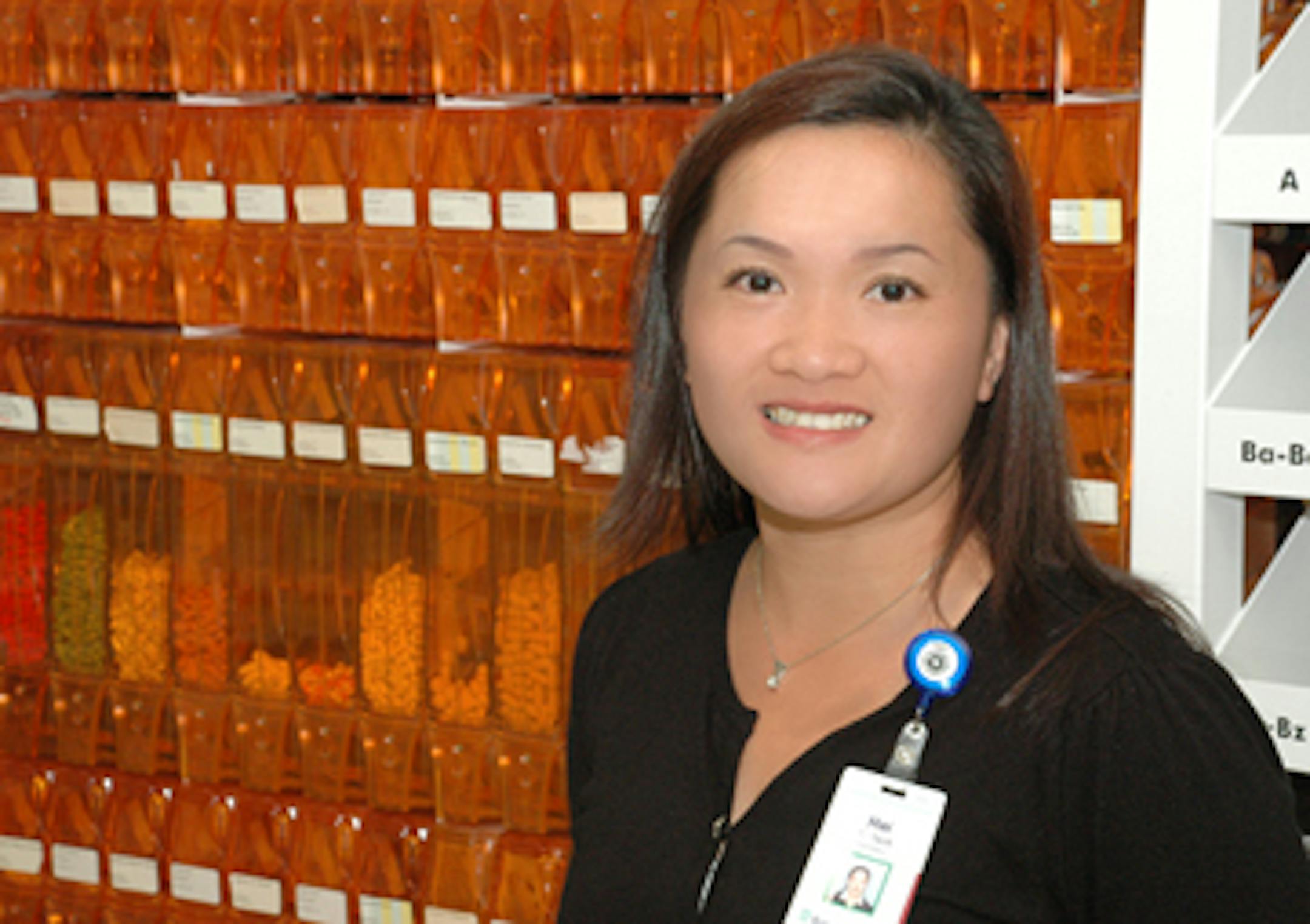 I am one of seven pharmacy techs who work in the outpatient pharmacy, where we process discharge medications, employee prescriptions and Regions Hospital clinic prescriptions. The pharmacy is very busy and I handle multiple issues at the same time. I greet and interact with customers, answer telephones, work cash registers, help fill prescriptions, process orders and interact with insurance companies. As the lead pharmacy tech, I do data entry and fill in wherever we're short.