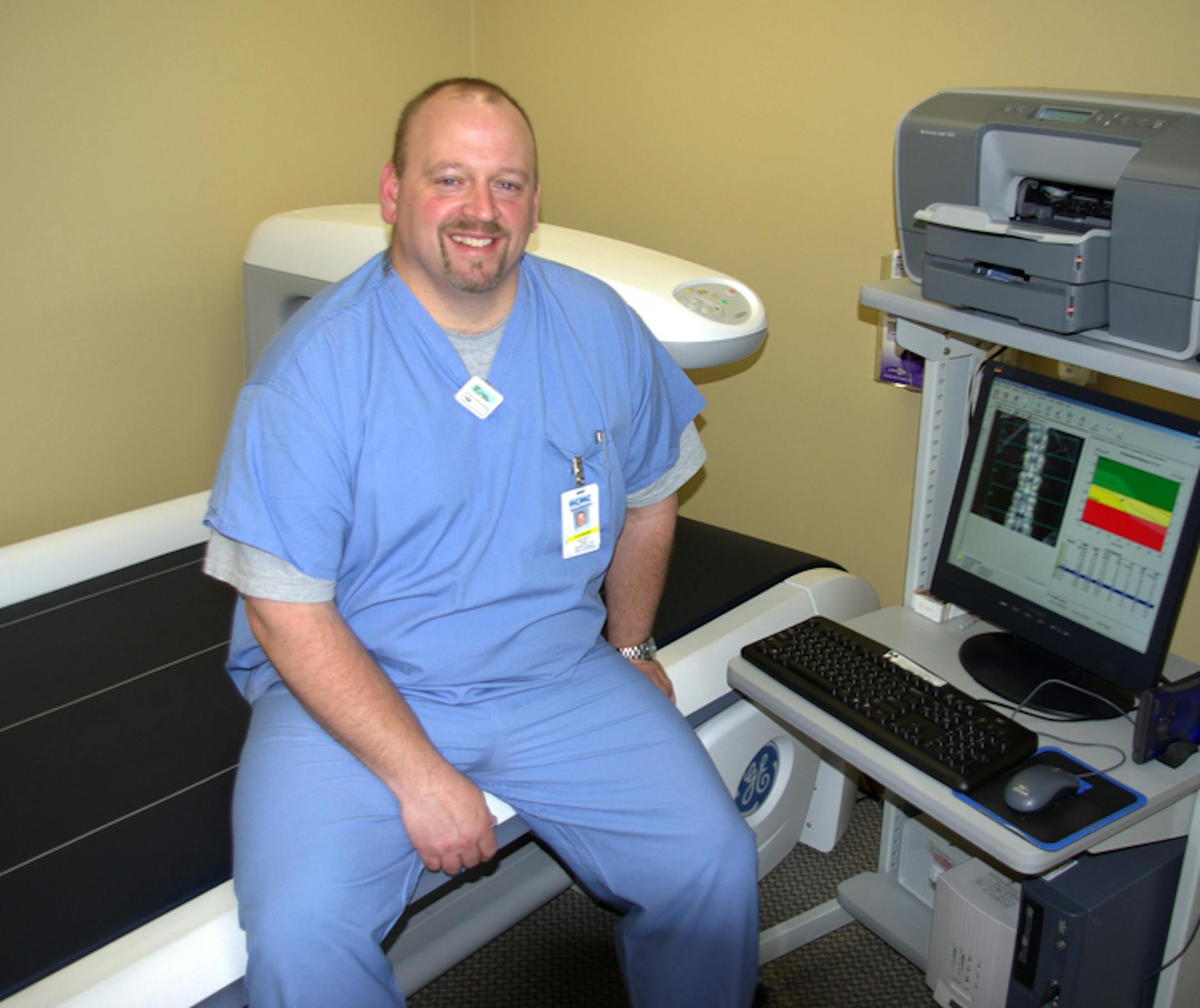 A: My day is split between being a technologist and a clinic coordinator. I have early morning appointments for bone density scans, many with organ transplant patients who take immunosuppressants that keep their bodies from rejecting the organs but also make their bones fragile. I also schedule patients, prepare their charts, measure their vital signs, give them instructions and prepare bone density reports for physicians.