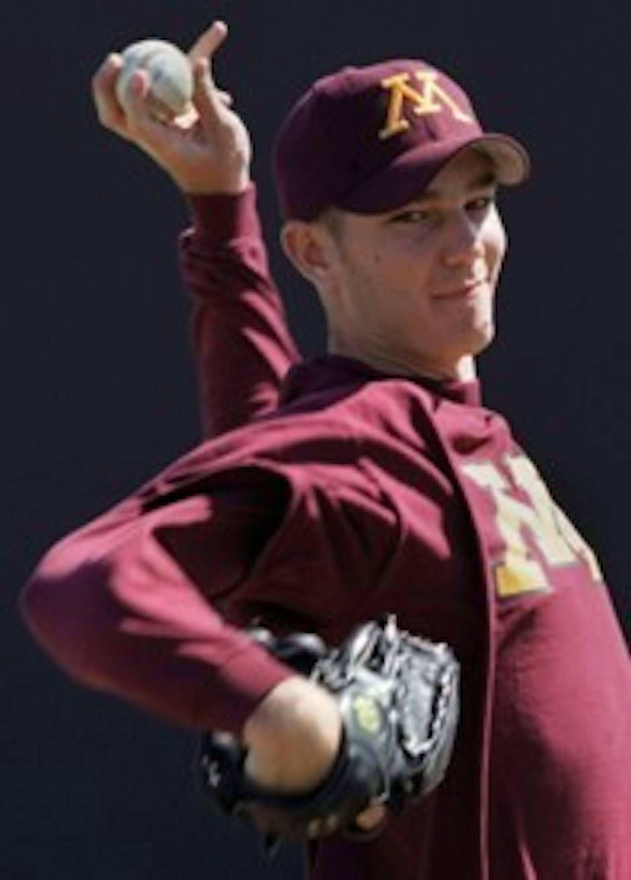 For us, it brought to mind a rather lengthy project we worked on in 2001 after then-Gophers pitcher Ben Birk (pictured) was hit in the face with a line drive. We talked to all sorts of folks and compiled quite a bit of data (and used math!) for a package on the impact of balls hit by aluminum bats. We have re-loaded, with help from a colleague, that material (a rather long story, and the accompanying sidebar and charts) into one on-line story. If this subject fascinates you and you want to read 3,000 words (roughly) on it, please click the link. If not, here is a little snippet we found particularly salient to the recent jury award. Remember, this is from May of 2001: