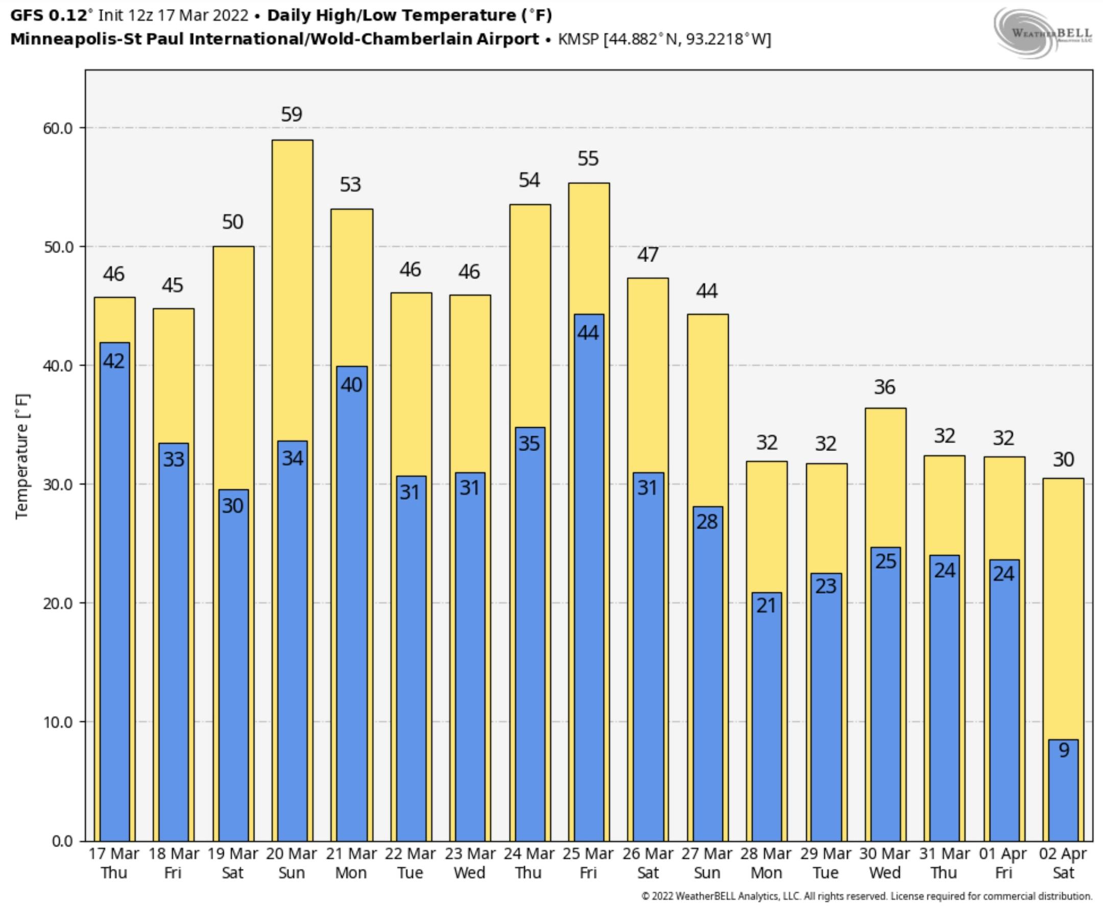 Which makes this quiet pattern in mid-March so memorable. A cellophane-thin layer of cirrus clouds at 25,000 dimming the sun tip us off to a storm sliding south of Minnesota today. The mercury mellows this weekend with low 50s Saturday and a good shot at 60F Sunday; an April-like blue sky draped overhead. A shower Monday gives way to steadier rain Tuesday. A coating of slush may fall Tuesday night.