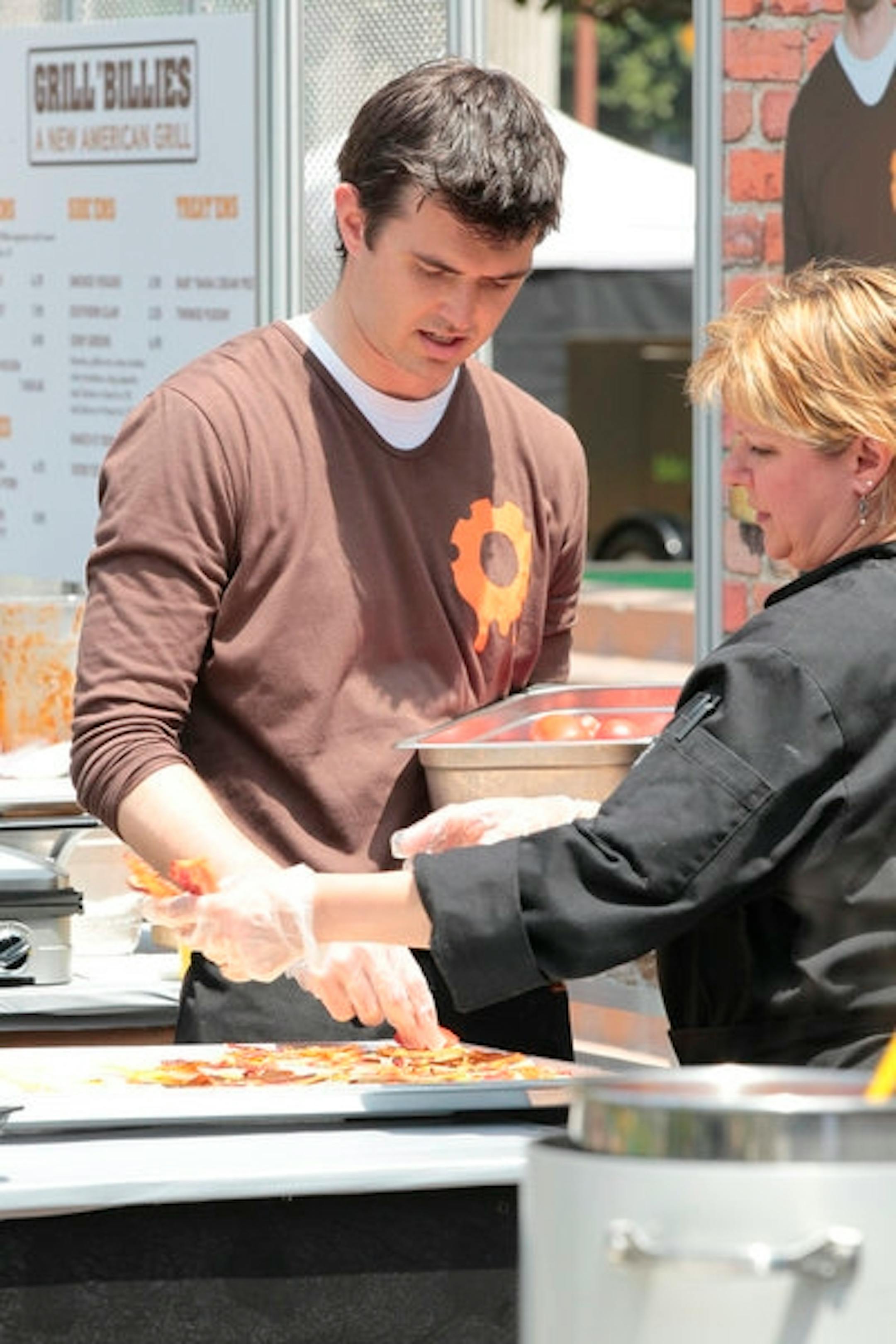 At the other extreme, Greg and Krystal, left, of Grill 'Billies won the popular vote at the exhibition with their cherry-cola braised pork sandwiches, never mind that their concept is "grilling." The judges' banter at the Grill 'Billies' booth, though, was confusing as Steve Ells and Curtis Stone first disagreed -- then argued and finally agreed --about the quality of the sandwich. In the end, they both liked it. But you had to feel for Greg and Krystal as the judges offered conflicting opinions. Ah, who do you side with?