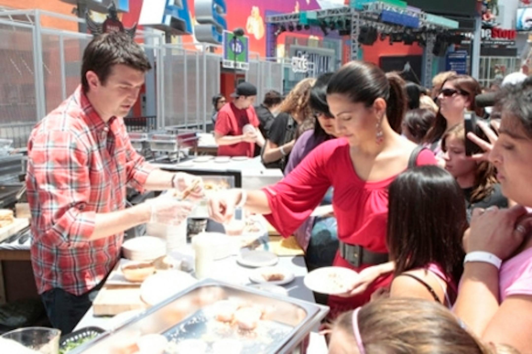 Eric, of melted cheese sandwiches (pictured here), won the popular vote (and this particular Italian version sounded good with multiple cheeses and Italian meats) as the 1,000 guests at Universal Citywalk in Hollywood sampled the contestants' fare under what appeared to be a very hot sun. (Where were the health inspectors? Where were the tents? There was no shade to protect people or food -- a nod, clearly, to the cameras.)