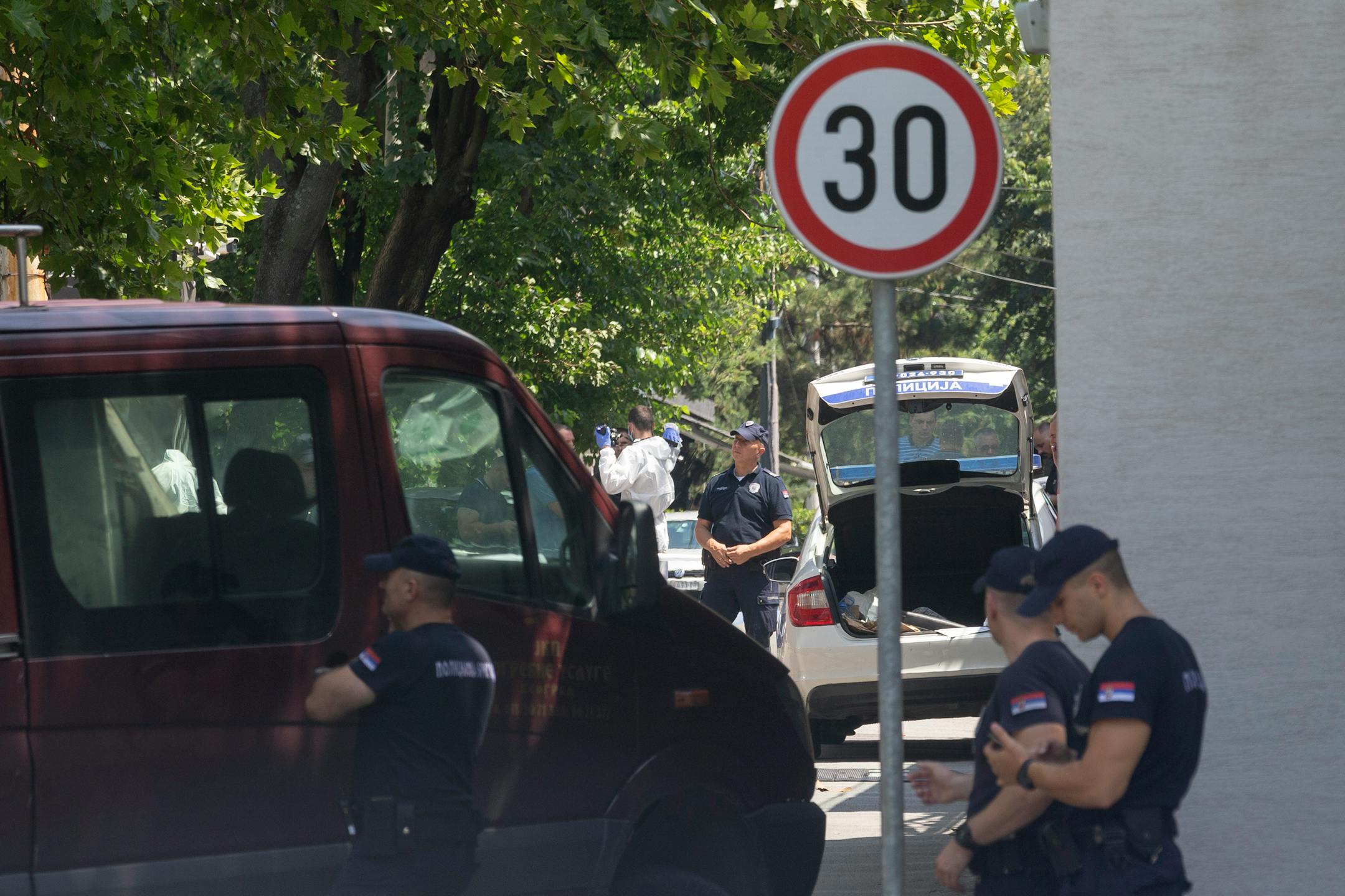 Serbia's populist President Aleksandar Vucic visited the wounded officer in the hospital, promising a sweeping crackdown against ''terrorists.''