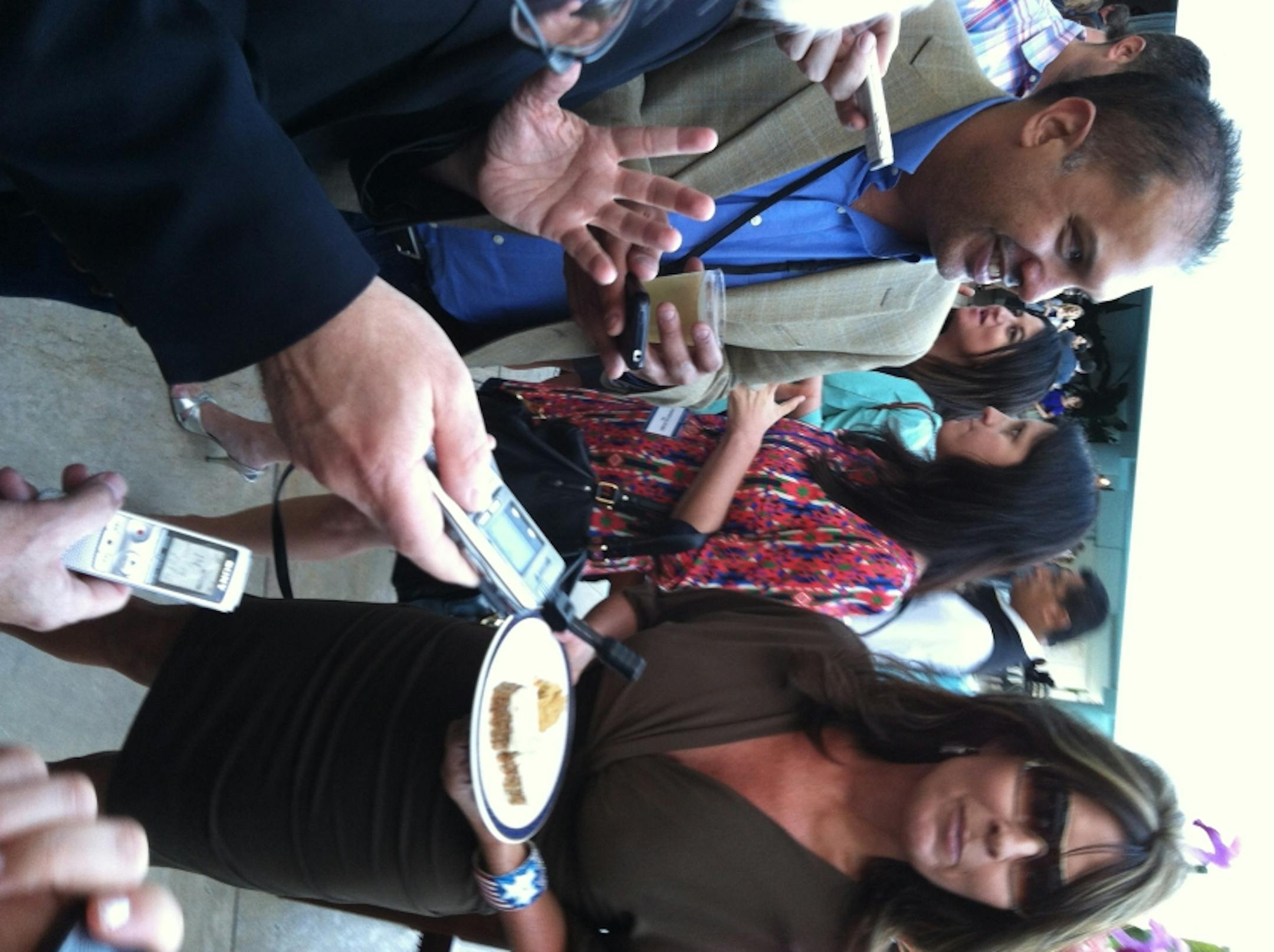 Neal Justin and Sarah Palin/photo courtesy of Roger CatlinLOS ANGELES -- NBC's cocktail party Tuesday night for TV critics was set up to be a bust, as executives decided to only invite talent from upcoming shows and bar current stars. That meant the biggest names expected to show up were Matthew Perry and Crystal the Monkey, not necessarily in that order.But--look--is that Sarah Palin?Heck, yes.The former Alaskan governor was there to support her hubby, Todd Palin, one of the participants in the new reality series, "Stars Earn Stripes," in which "celebrities" participate in an intense seven-week boot camp, hosted by former presidential hopeful Gen. Wesley Clark.Mrs. Palin did her best to cede the spotlight to her husband, but she did speak to us poolside as she sampled a number of desserts. Some excerpts:Q: What do you think about your husband doing this show?A: Todd's on fire. He's a commercial fisherman, a world champion snow machine racer, he's got all this physicality that requires a lot of mental toughness too that you guys will be surprised to see manifested.Q: For a change, it must be nice for Todd to be in the spotlight instead of you.A: Heck yeah!Q: Were you worried about him doing this?A: Oh, heck no. Q: Would you do another reality show?A: Not necessarily.Q: How about your daughter's reality show, what's that experience been like?A: It's been great and I love the show. I think it's clever, it's absolutely real and I'm proud of the girls. Q: Why is she doing it?A: I know that no matter what, Bristol or Willow or Track or Piper and someday Trig, no matter what they do they're going to be criticized but it's like Bristol said all along: the critics are going to criticize, the haters are going to hate, you might as well dance. That's why she did dancing with the stars and that's why she's doing what she's doing today. And her show today I think is very positive, its very realistic in terms of showing what single motherhood really is. It's not like the 'Teen Mom' partyin' woo hoo fun glamorizing single motherhood. She's showing that it's a lot of work and it's not an ideal situation and you make the most of the circumstances that you're in but it's not something to glamorize or to sort of encourage young girls to emulate.Q: If "Stars Earn Stripes" has a second season, would you do it?A: Oh my gosh. I would have to be doing a whole lot of push-ups.I don't think physically I would be able to handle what it is that they've gone through. It will blow you guys away when you see what they do. I've seen some clips of it and just as a witness to the bumps and bruises at the end of the day, it amazes me. But like Todd said, our son is over in Afghanistan. He and every other member of the military go through this in real life and for the real cause. What they go through is nothing compared to the real thing.