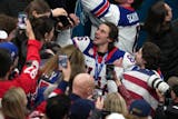 A younger brother of the Wild’s Quinn Hughes, Jack wired a wide-open shot by Canadian goaltender Jordan Binnington only 1 minute, 41 seconds into overtime before flinging his helmet into the air and getting surrounded by teammates for a jubilant celebration.