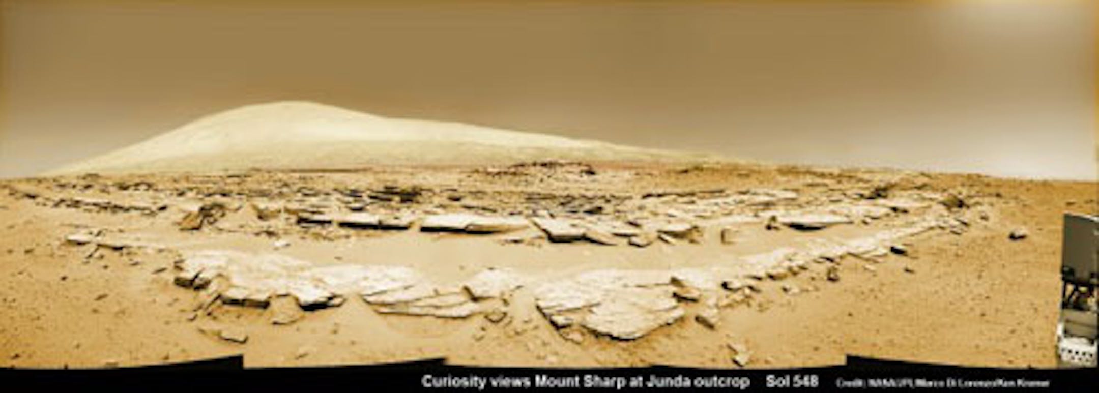SCIENCE! Mount Sharp at the Junda Outcrop! Tanaka, when the walls fell! A panorama from robot on Mars.