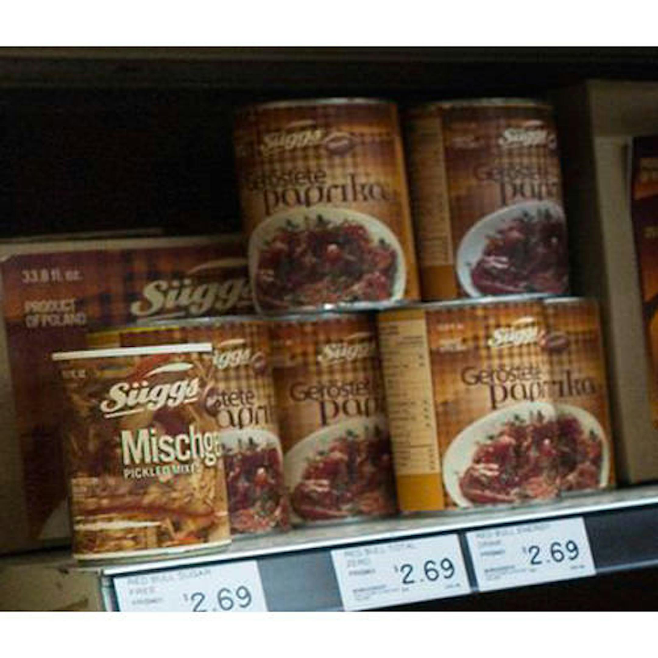 Suggs brand Gurketsalat. Not a brand I remember. If you search "Fargo season 2" and Suggs, nothing will come up - except the name of a character we never meet, Big Jim Suggs. Another clue: