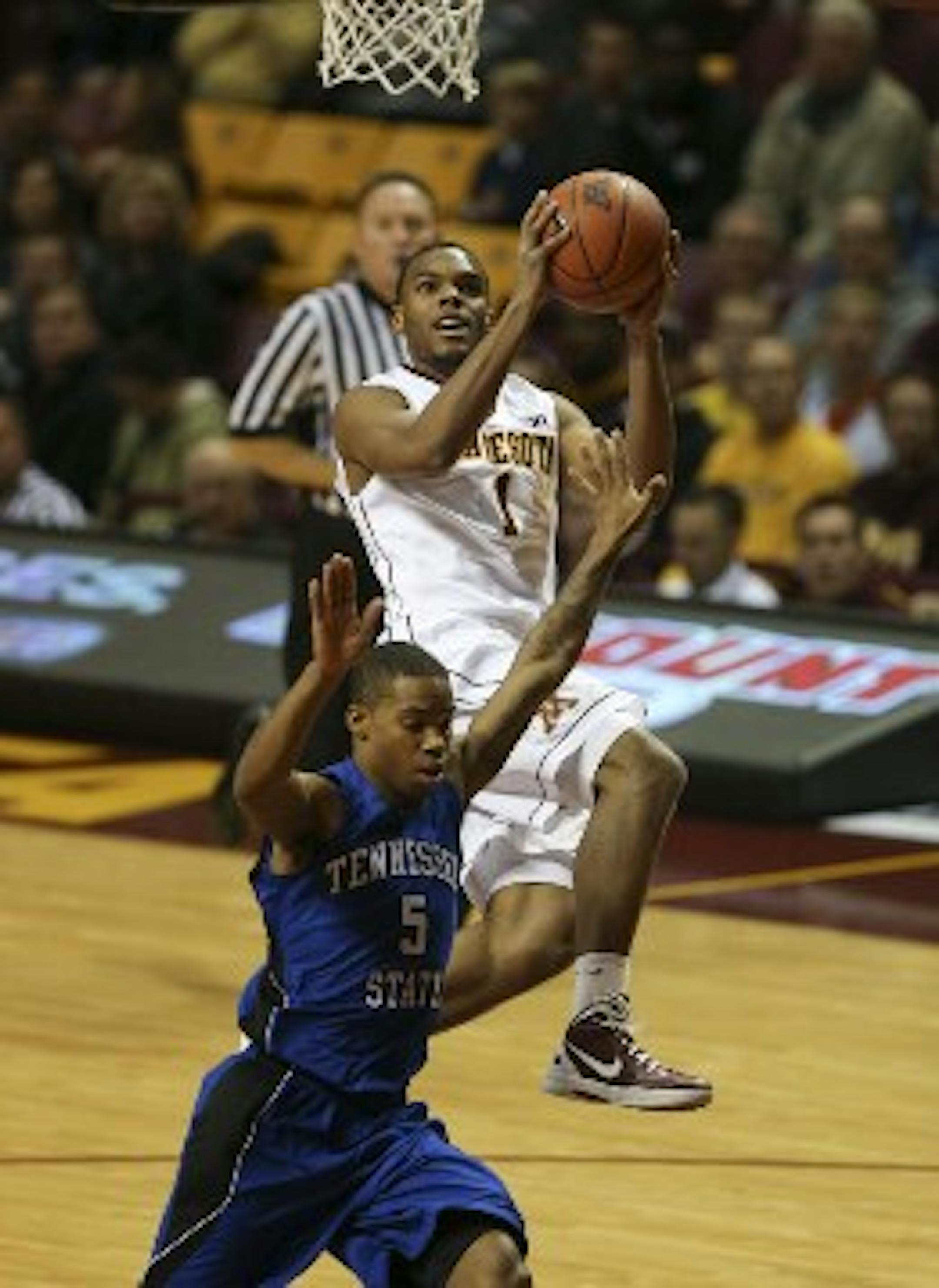 Still, a performance like last night's -- 13 points, five assists and four rebounds -- as the Gophers head into a tough five-game stretch, is highly encouraging. Minnesota has won easily in three games now, and by all appearances has been doing fine without much offensive effort from the sophomore. But make no mistake – this team needs strong performances from Hollins.