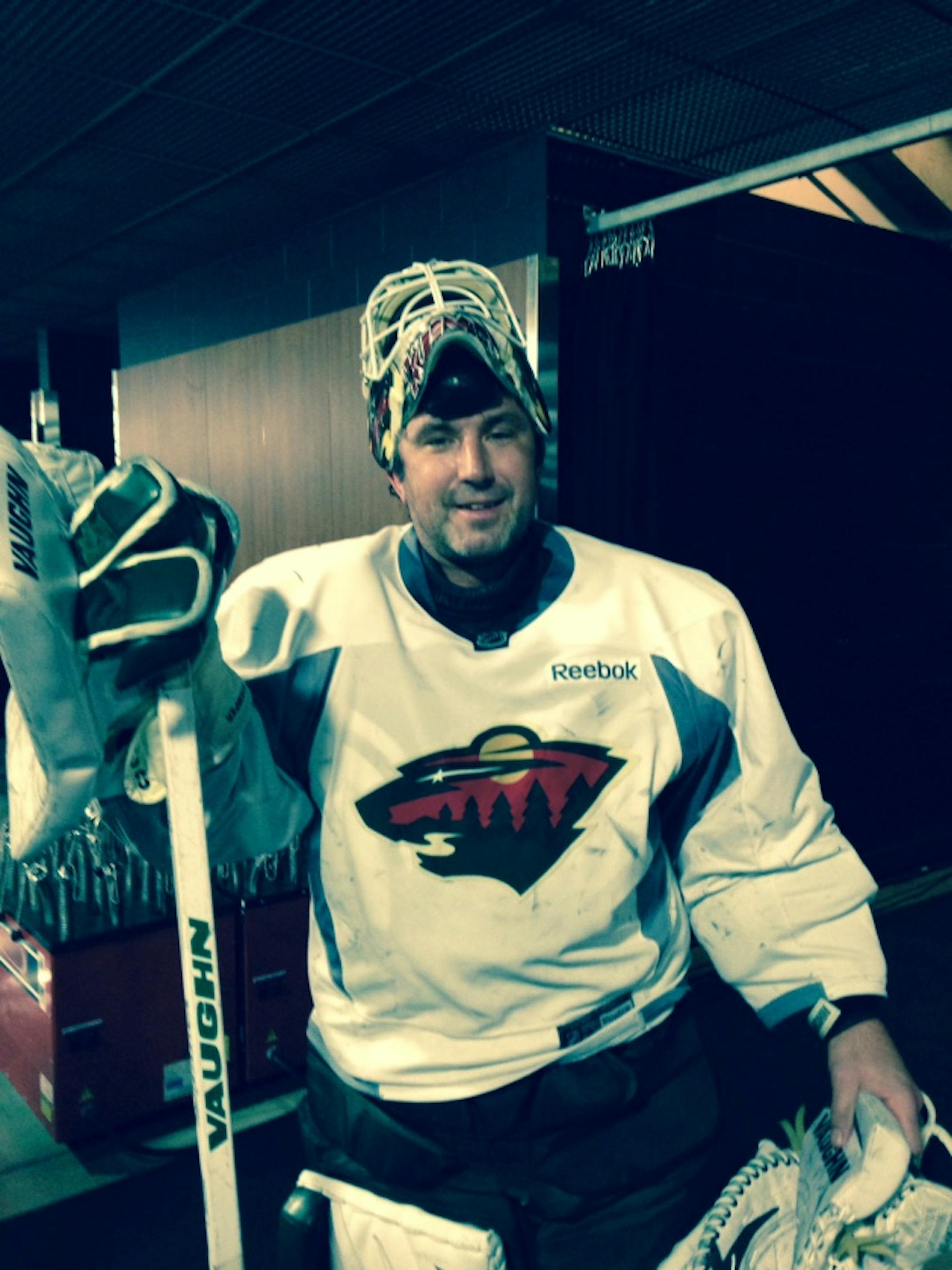 Yes, that was Andrew Brunette, the third-leading goal scorer and fifth-leading point-getter in Wild history, in goal at the end of today's Wild pregame skate.