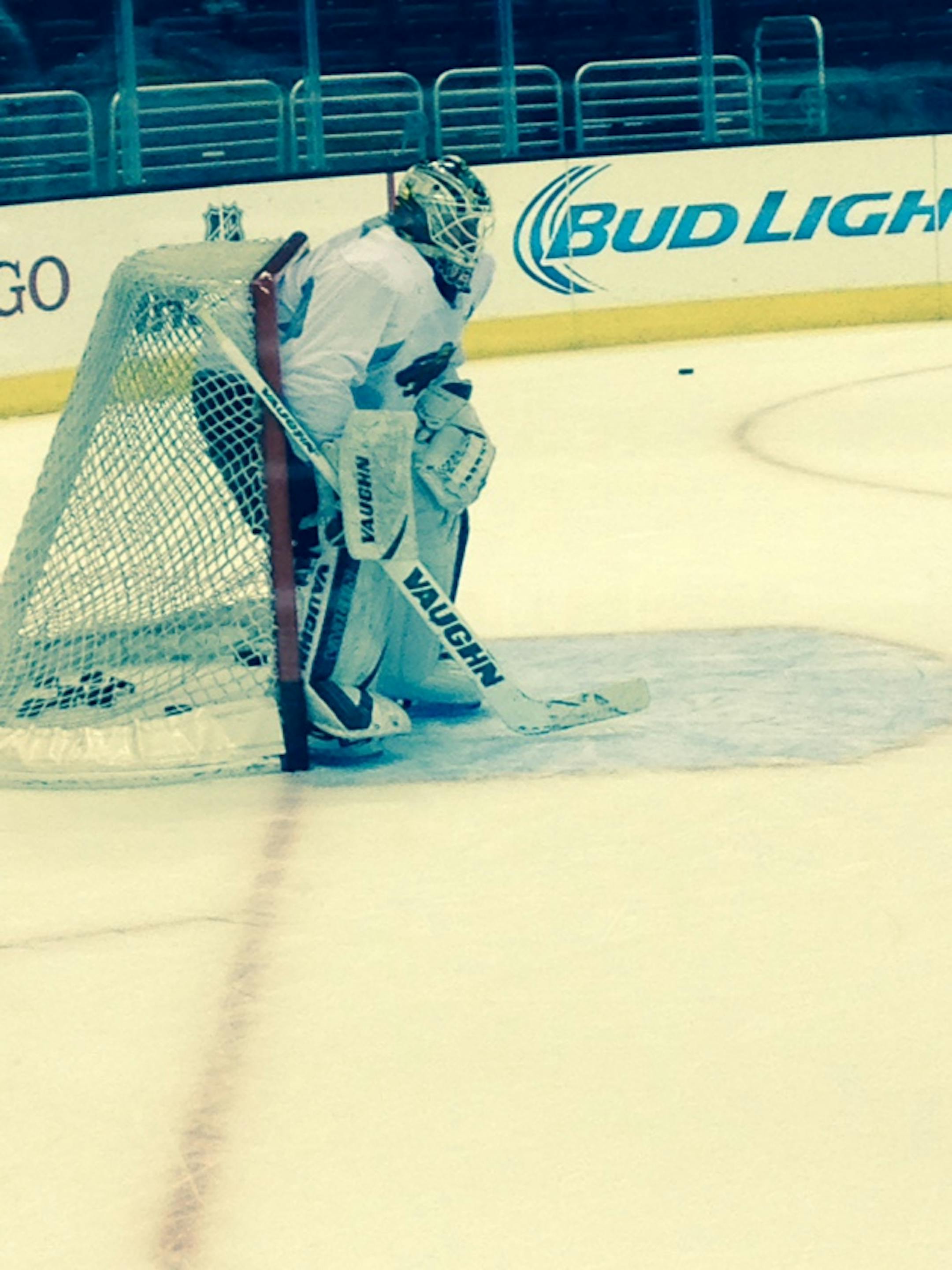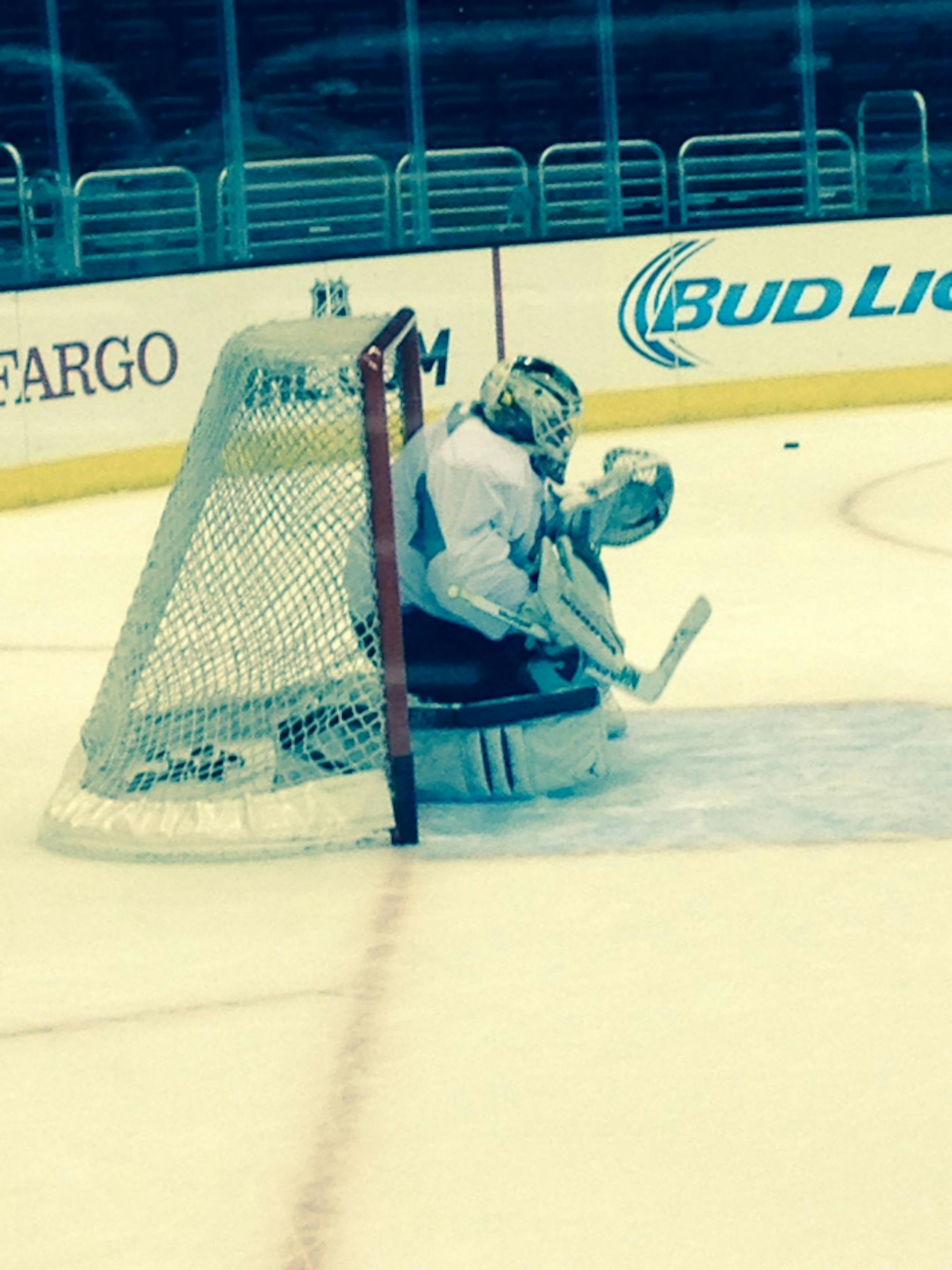 Assistant coach Darryl Sydor's scouting report, "He looked a little bit like Ken Dryden, really low. There's a little room blocker side. Speeds's not that good."