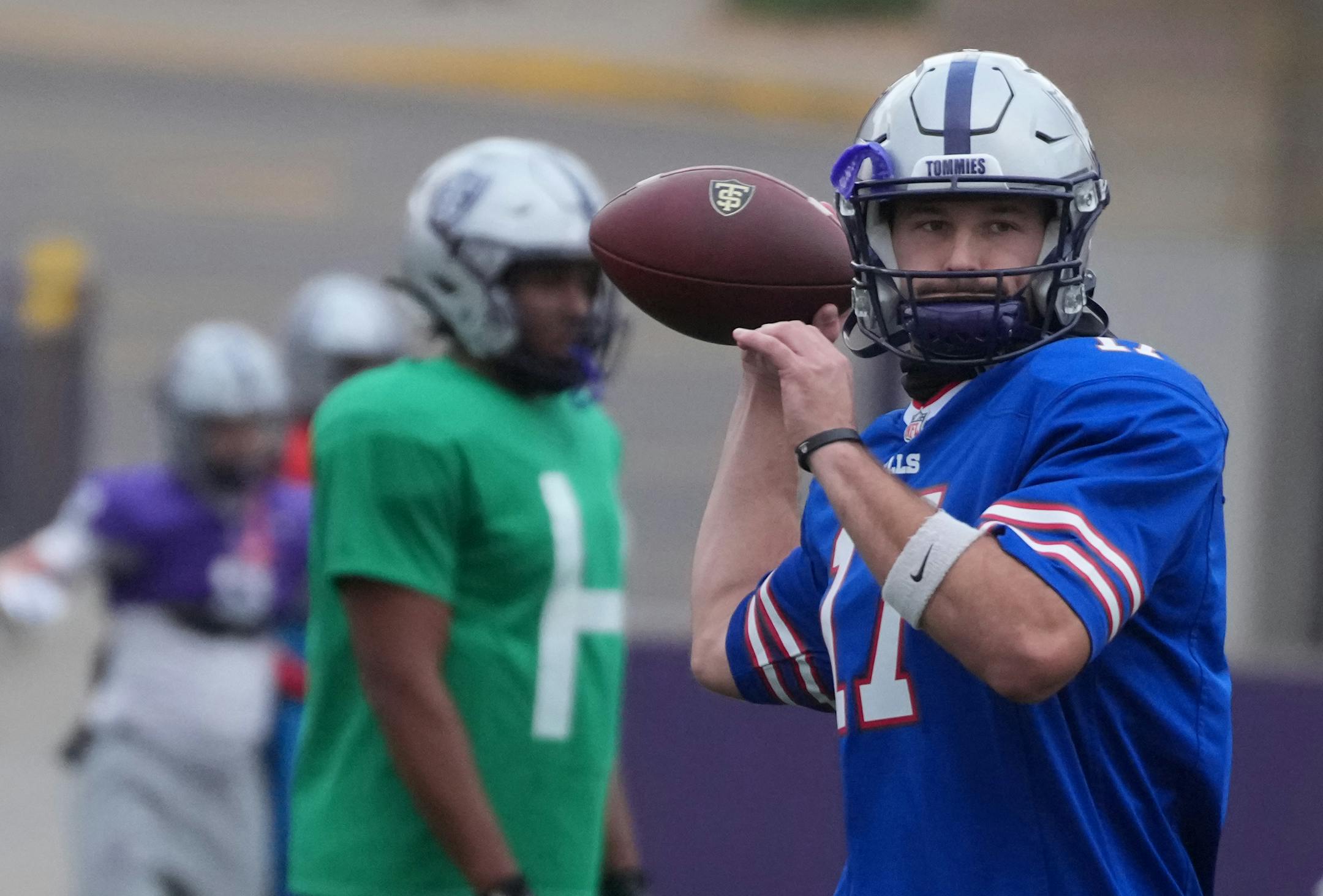 The Tommies turned interceptions by Nick Hand and Rod Finley in the second quarter into 1-yard touchdown runs by Peters. Peters followed with a 7-yard touchdown pass to Luke Schuler for a 35-0 lead at halftime.