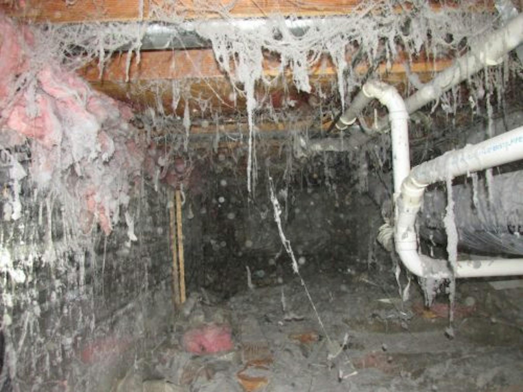 This basement had creepy-crawlies caught in spider webs all over the place, and there were no lights. Yuck.