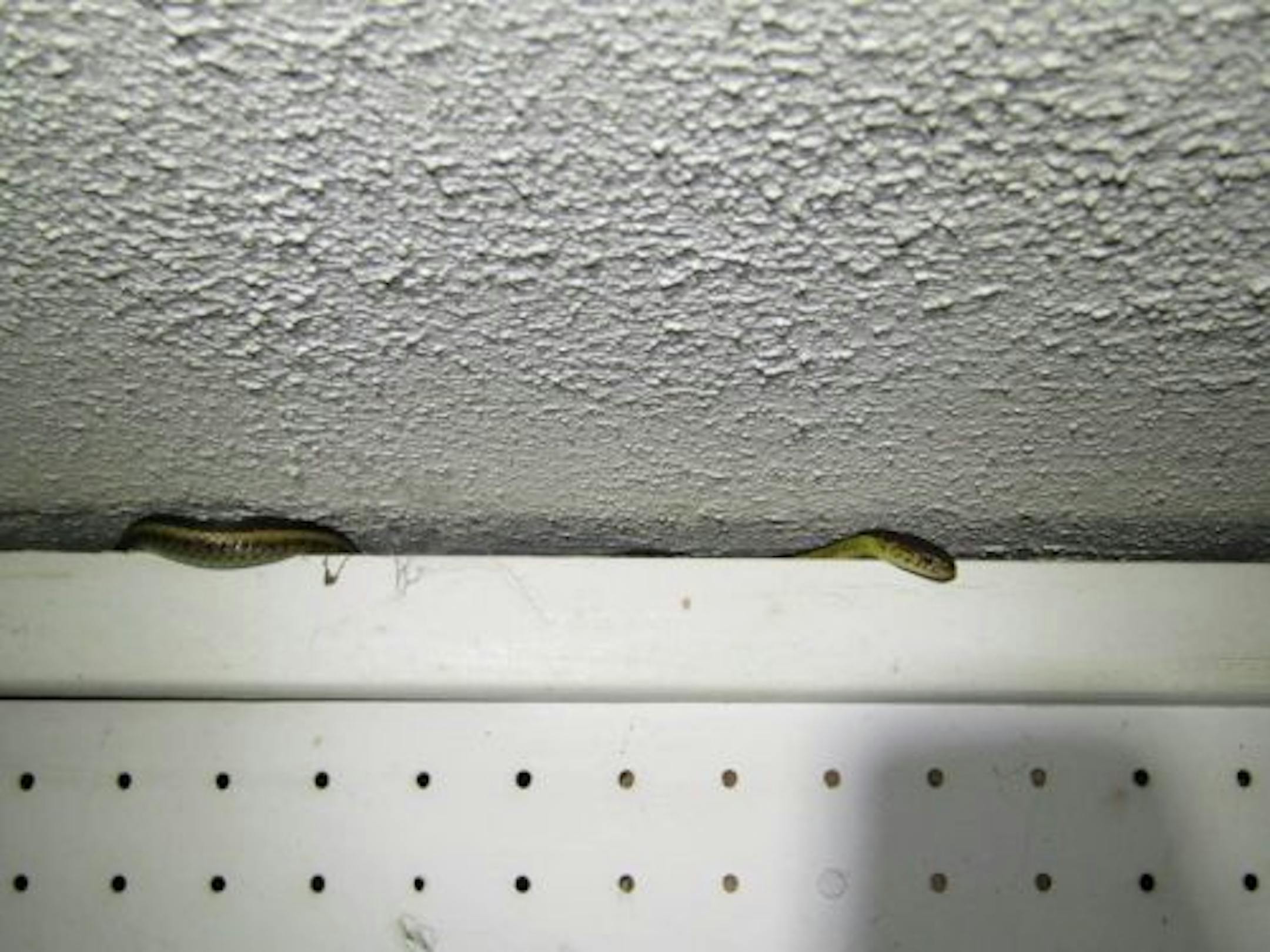 This next collage was especially awesome. The electrical conduit was disconnected, so mice were climbing up to the upper panel and frogs were falling down into the lower panel.