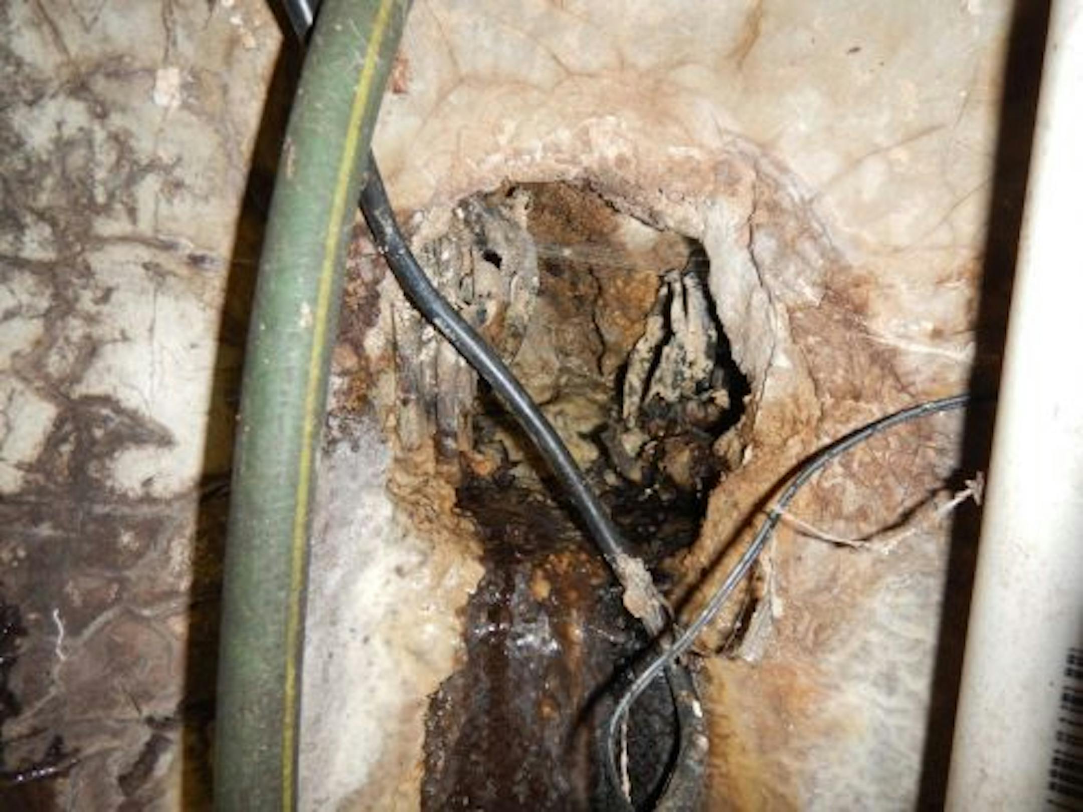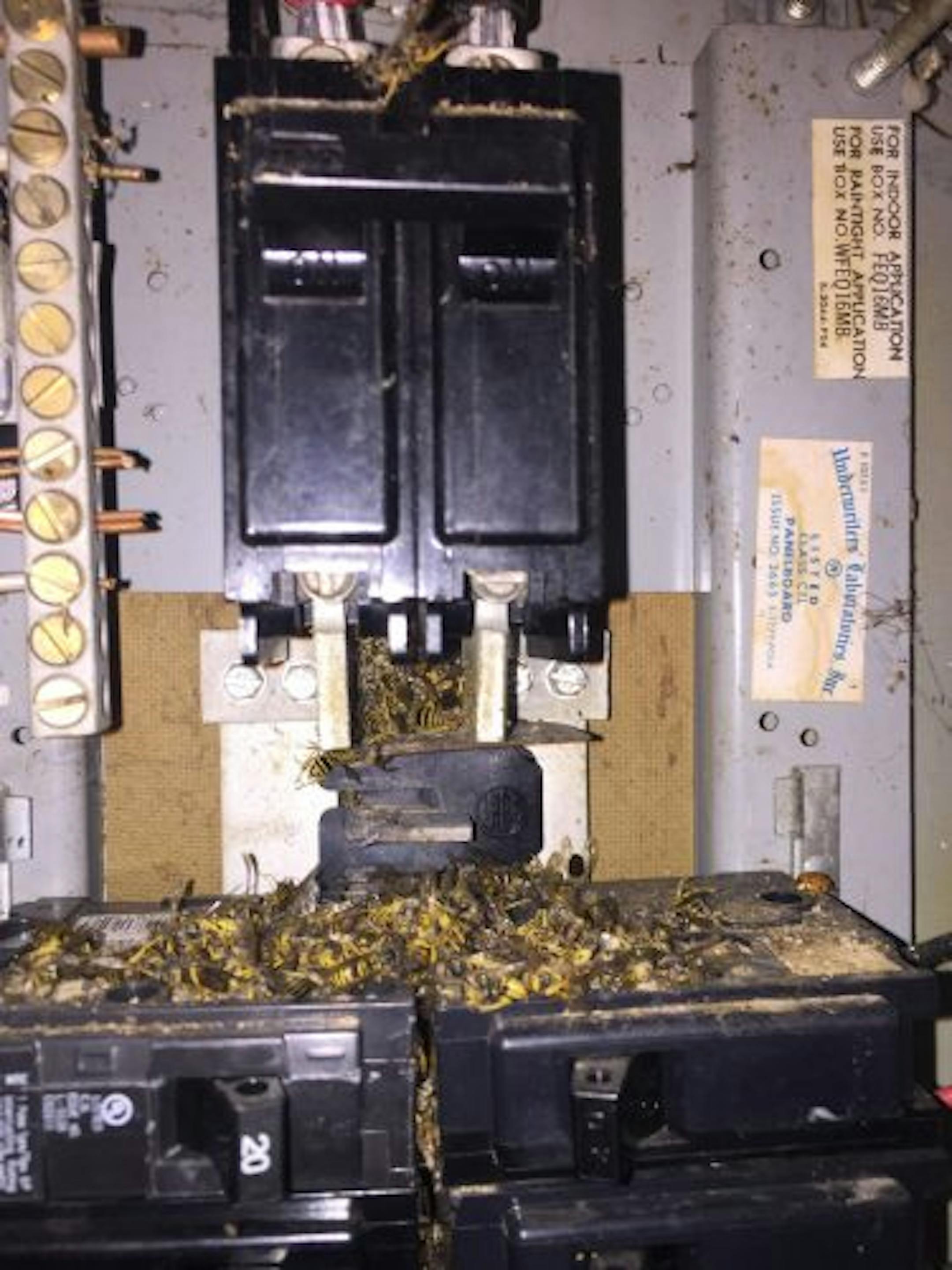 Bees, hornets, or wasps inside of an electrical panel. I don't know how to tell the difference, sorry.