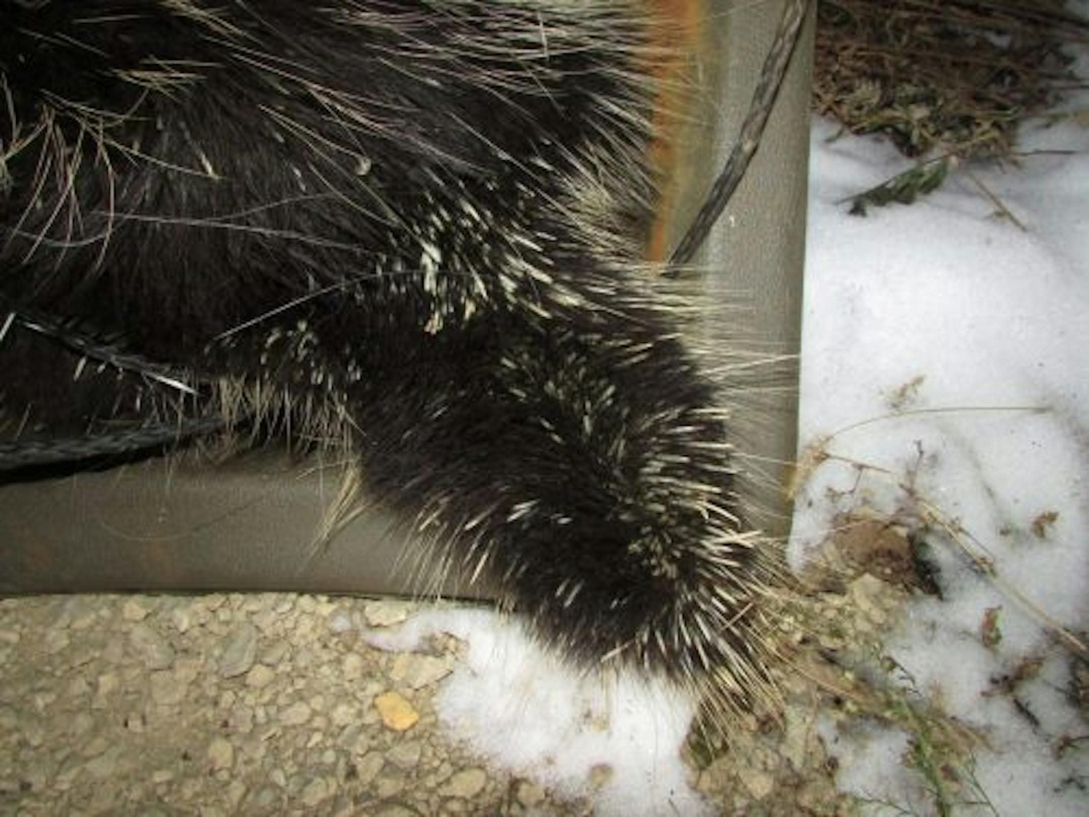 Here's a dead porcupine that I found inside a garage in South Saint Paul. I had no idea we had porcupines in the city until I found this carcass.