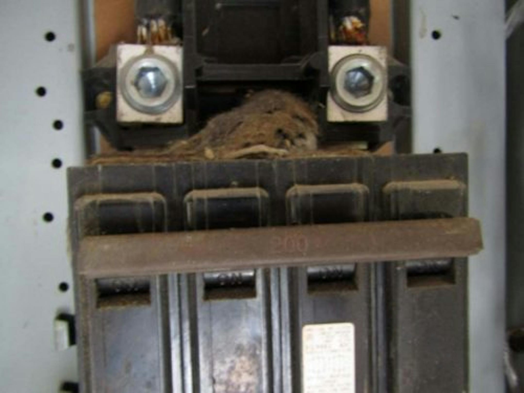 This is a dead something-or-other inside of the electrical panel. This is what happens when knockout holes aren't filled.
