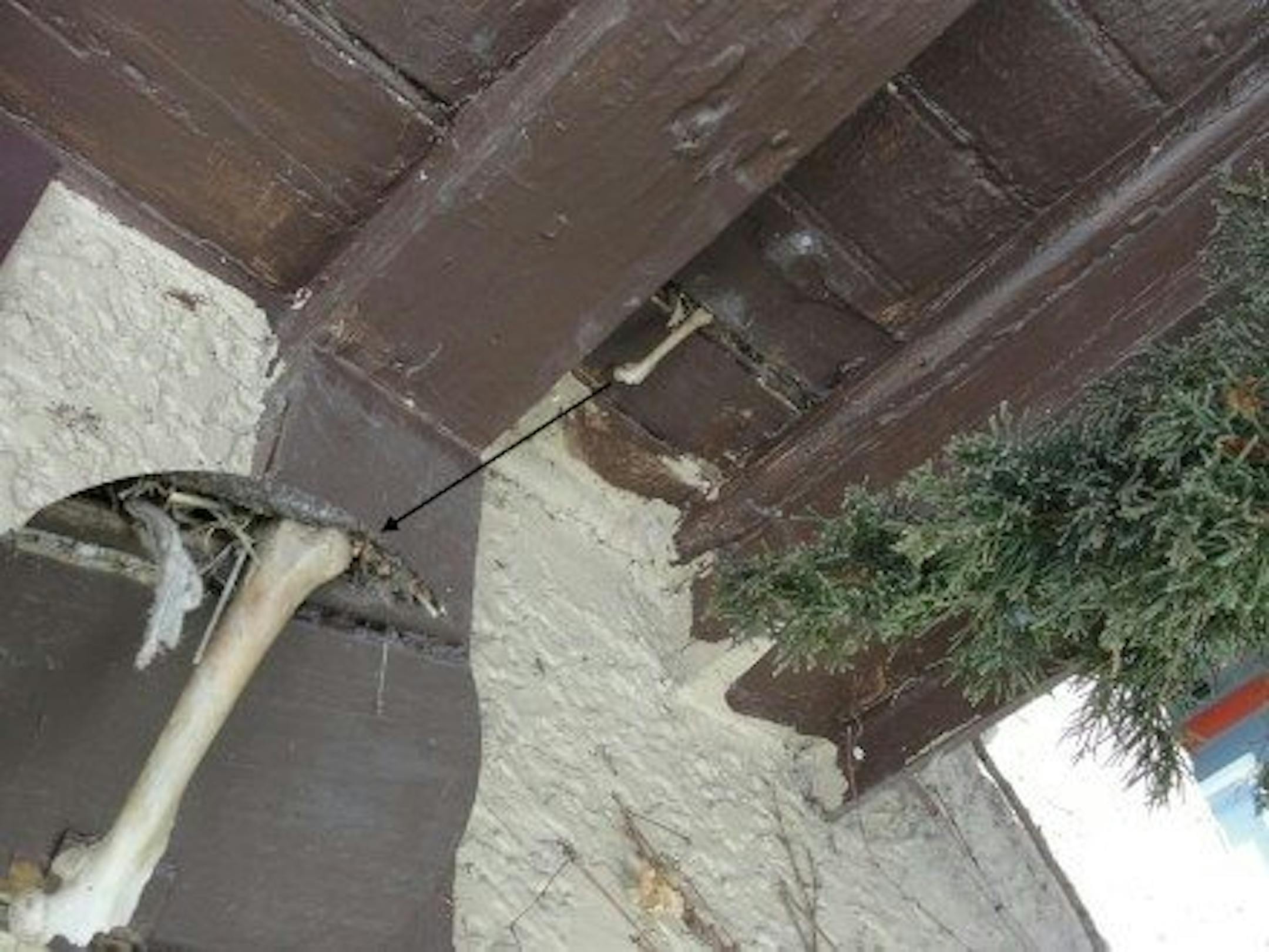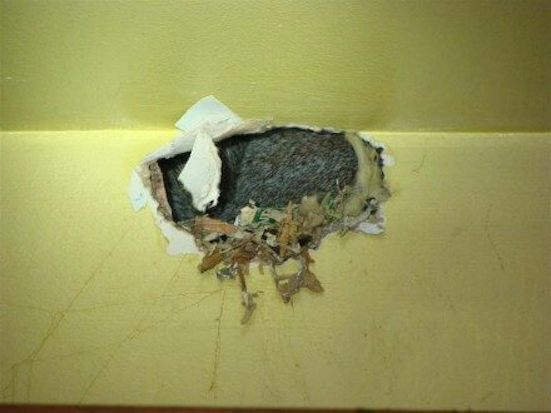 This was a squirrel living in the wall of a vacant Category II property in Saint Paul. I extended my tape measure and poked it just to be sure. It was definitely living.