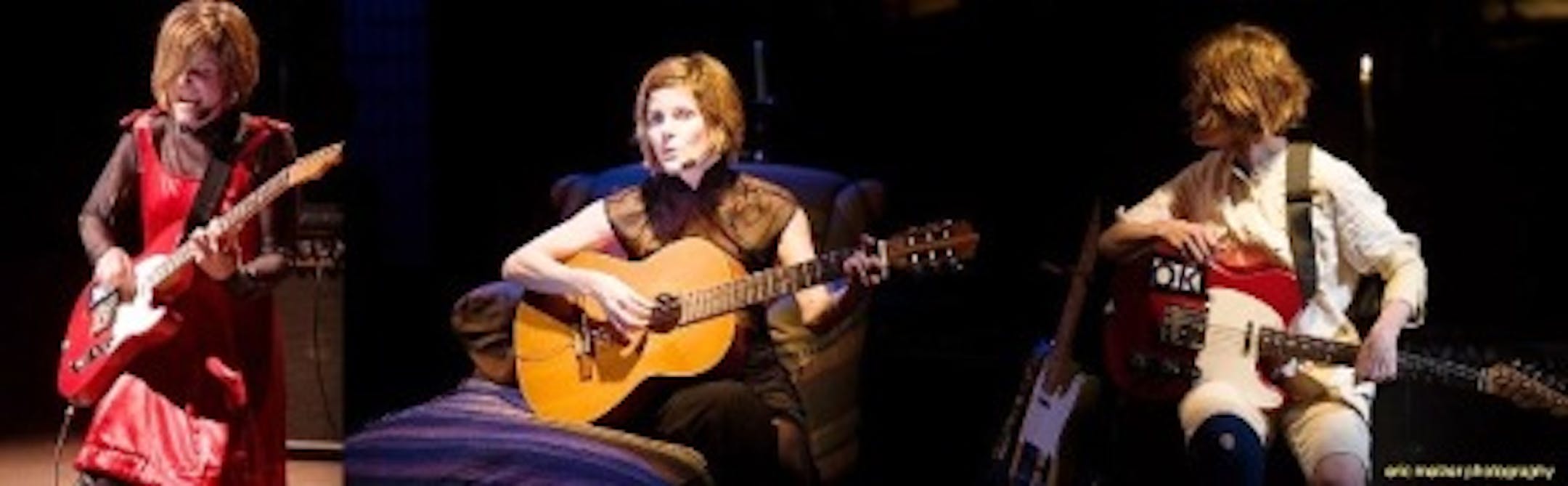 Musicians Chadly Koppenhaver and Pablo Jones accompany Enneking and play the three versions of Joan of Arc presented in the piece: the young virgin; the experienced hand who has had thousands of lovers; and the rock star haunted by a dark past.