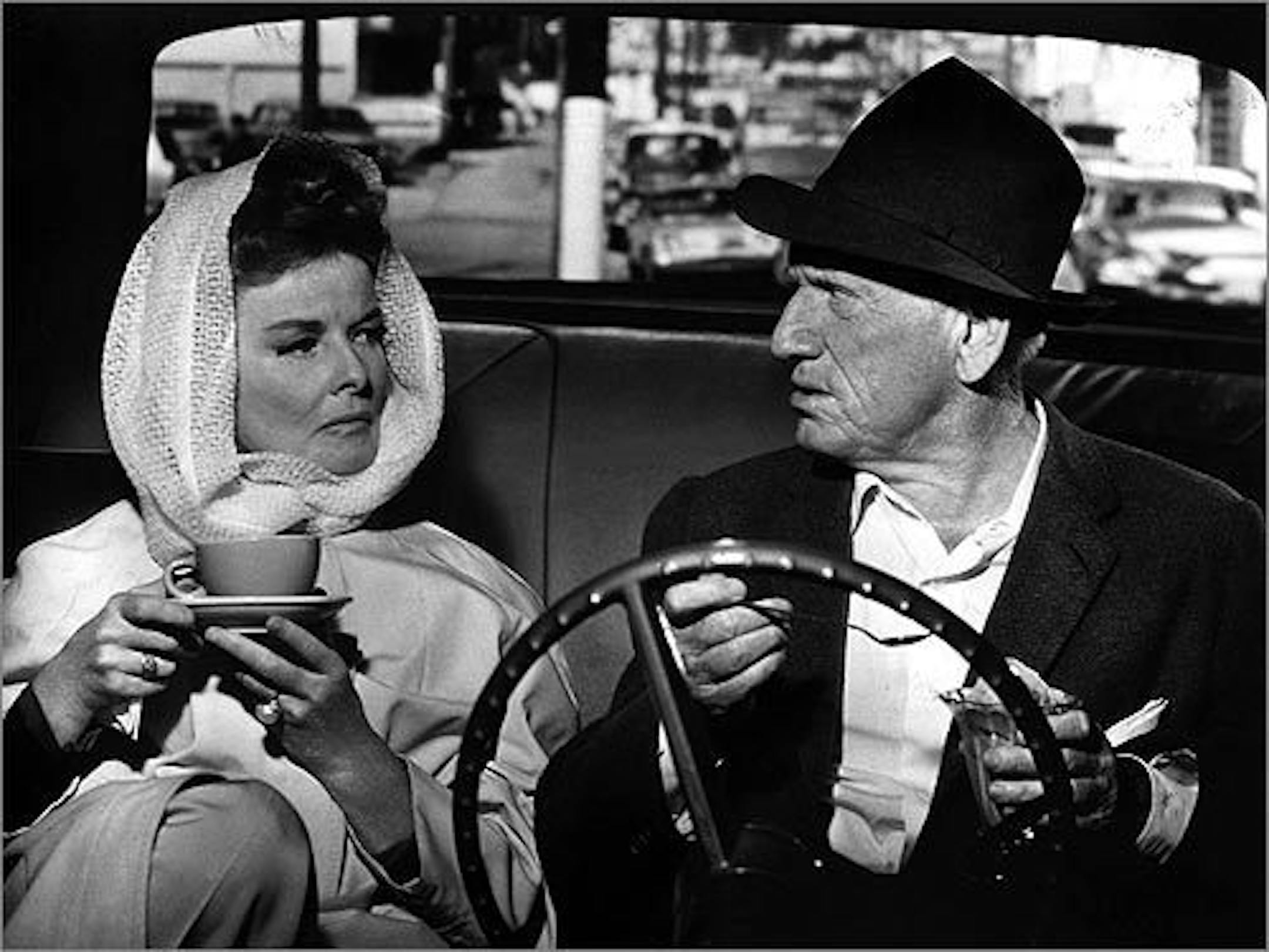 "Guess" garnered 10 Oscar nominations (including, shockingly, for both Art Direction/Set Direction and Music; you'll know why they rate a "shockingly" when you see the movie), and won two: William Rose, for his original screenplay, and Katharine Hepburn (pictured, above) in the Best Actress category. It was her second Academy Award ("They don't usually give these things to the old girls, you know," is what she wrote in a thank-you telegram to the academy); her first, for "Morning Glory," was in 1934, and she would go on to win two more, for "The Lion in Winter" in 1968 and 1981's "On Golden Pond."