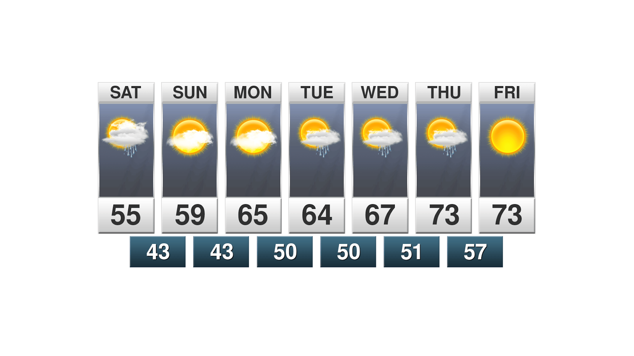 Here's the weather outlook from AM Saturday to AM Monday, which shows fairly quiet weather in place across much of the state.
