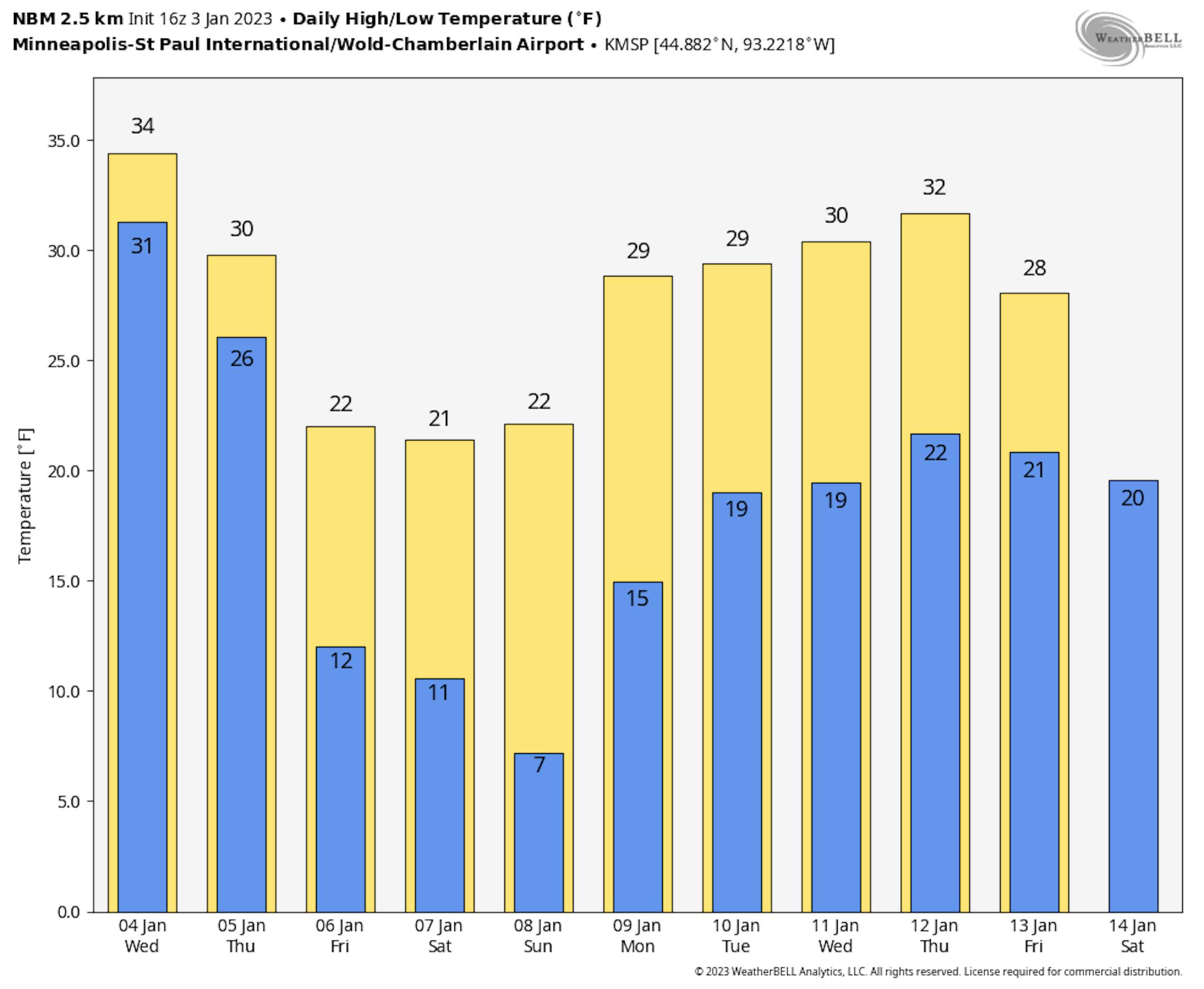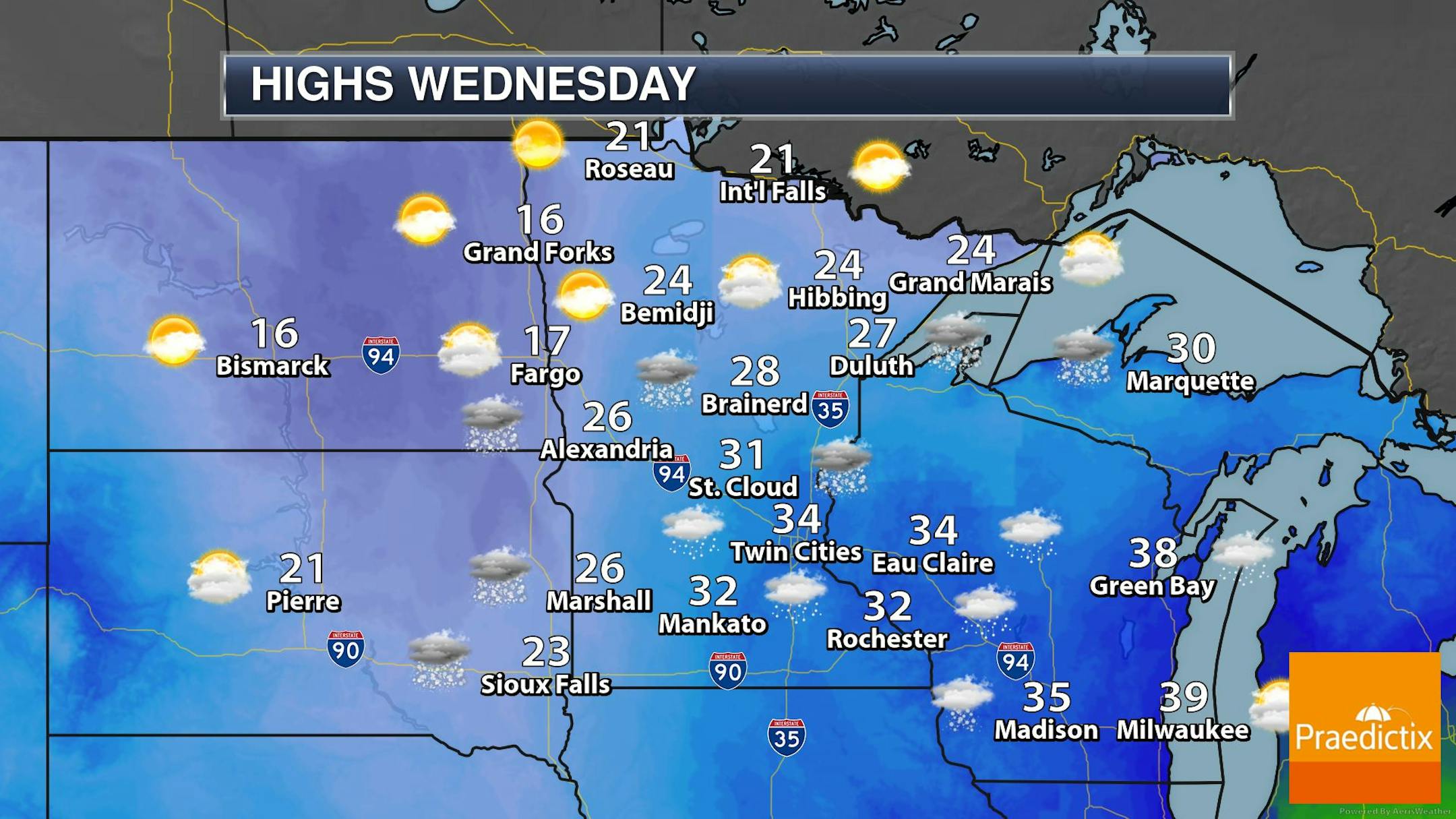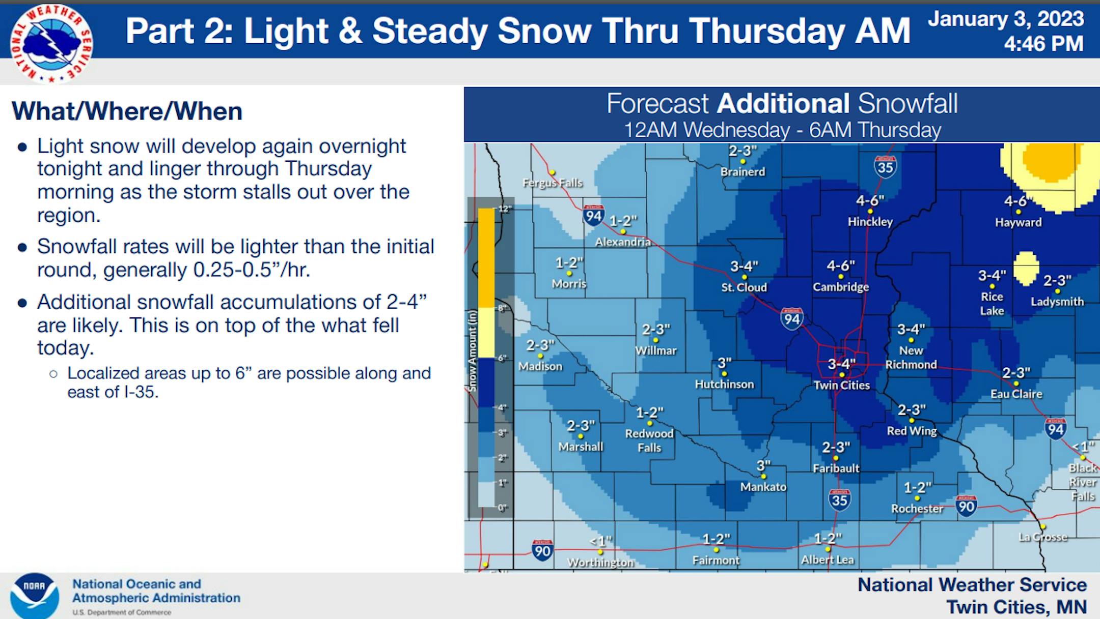 Additional snowfall amounts from 12AM Wednesday to 6AM Thursday show an additional 3" to 6" across eastern parts of Minnesota into Western Wisconsin.