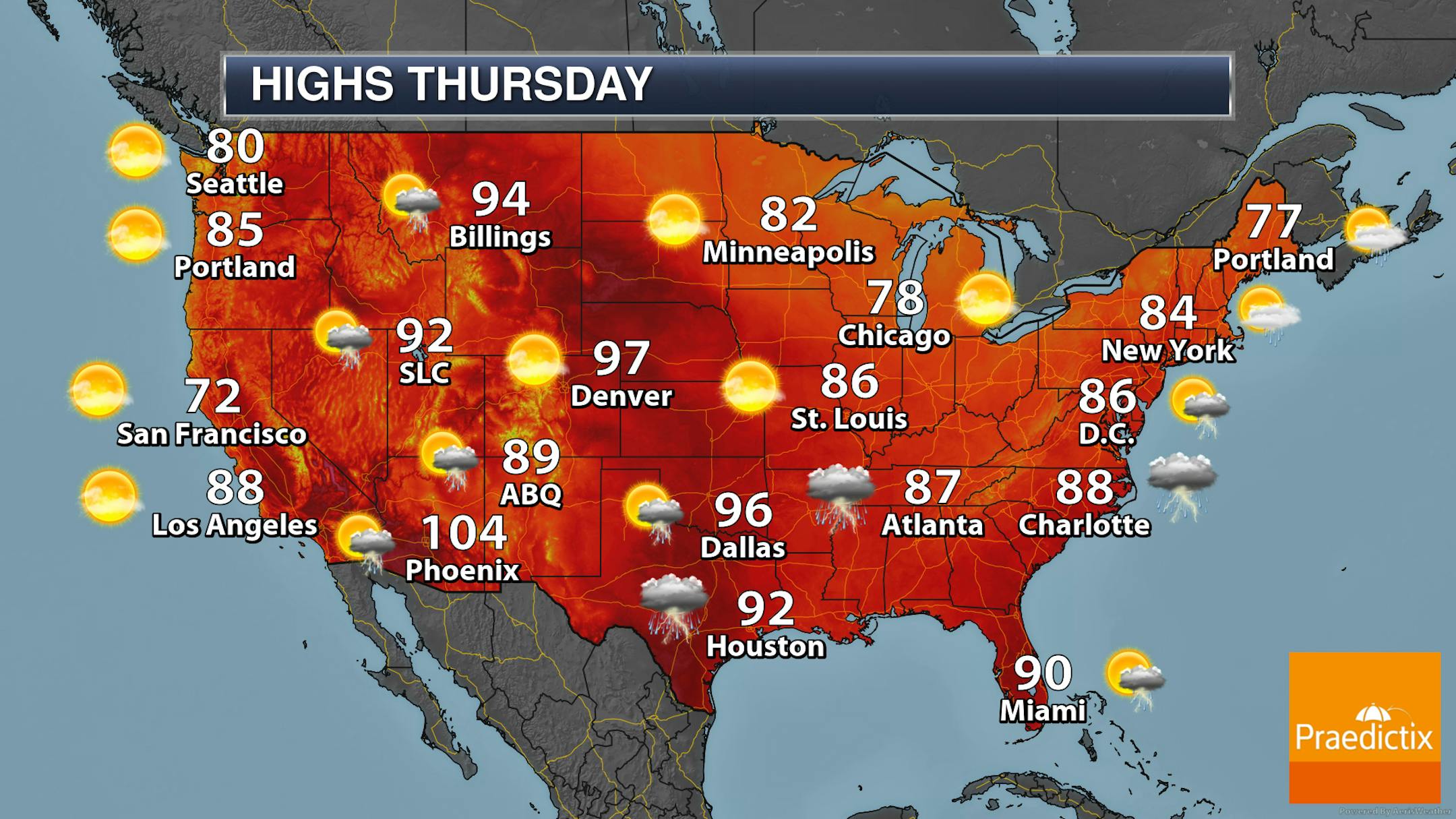 A pleasant and average Thursday is expected in the metro, with morning temperatures in the low 60s and highs climbing to the low 80s. Another day with plenty of sunshine is expected, though some morning and late-day clouds are possible.