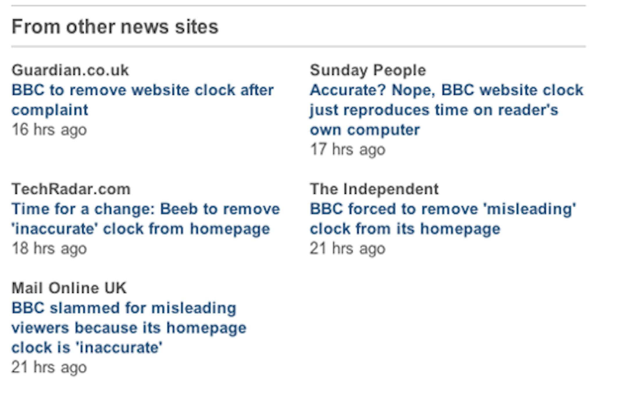 Here's how the BBC's own page assembles other news organization's stories on the subject, with the headlines reflecting the paper's biases: