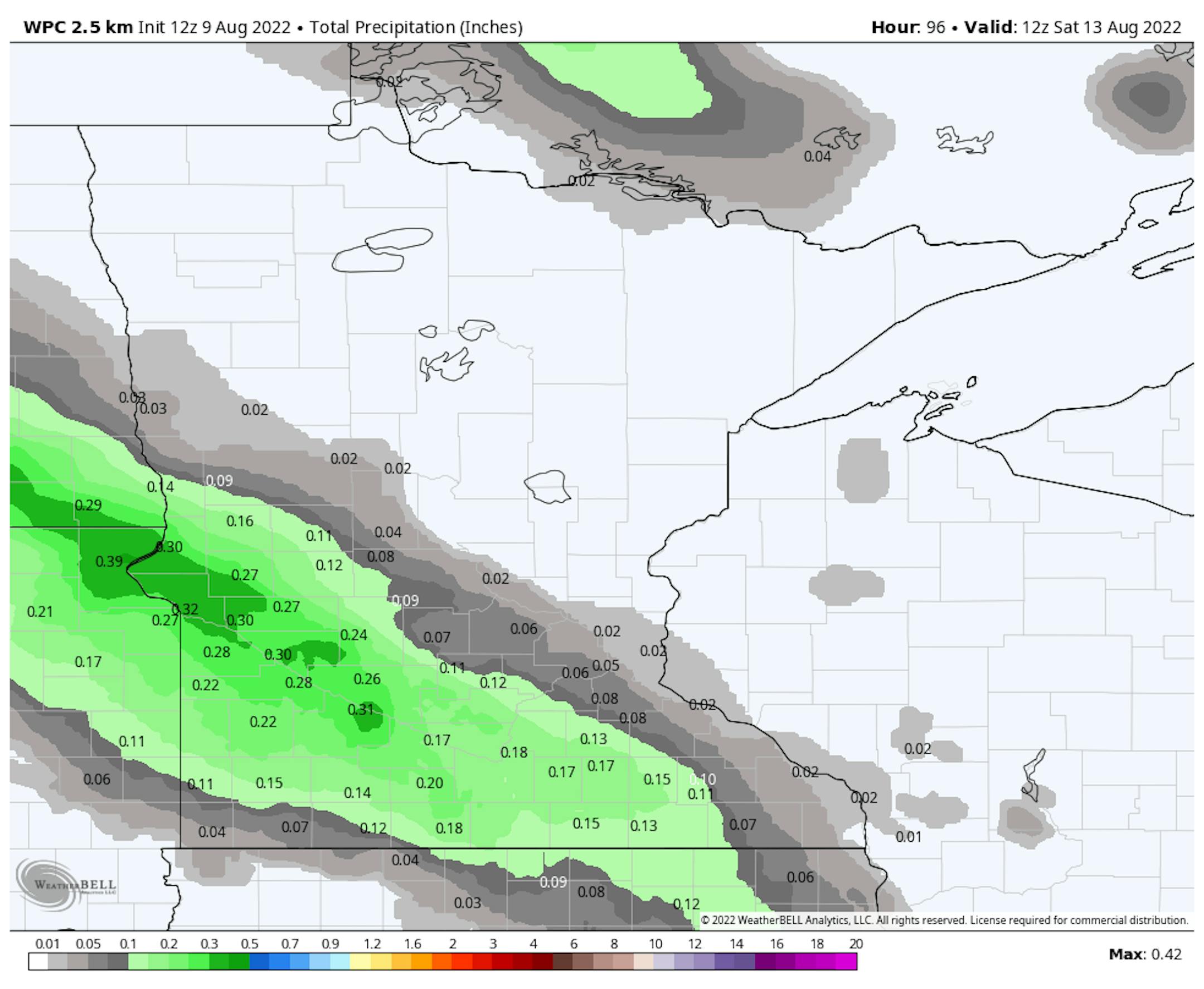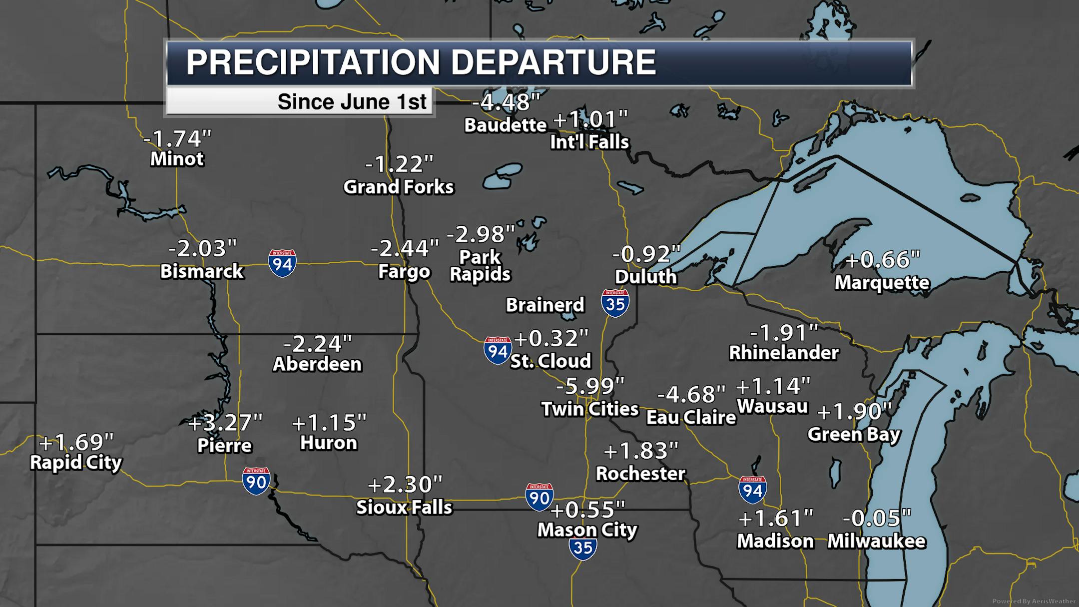 With those couple of systems Thursday night into Friday, the best chances of rain will be out in western and southern Minnesota with the potential of up to a third of an inch in areas that get both rounds of rain. The rain chances greatly decrease the farther east and north you go, with rain chances pretty minimal north of I-94.