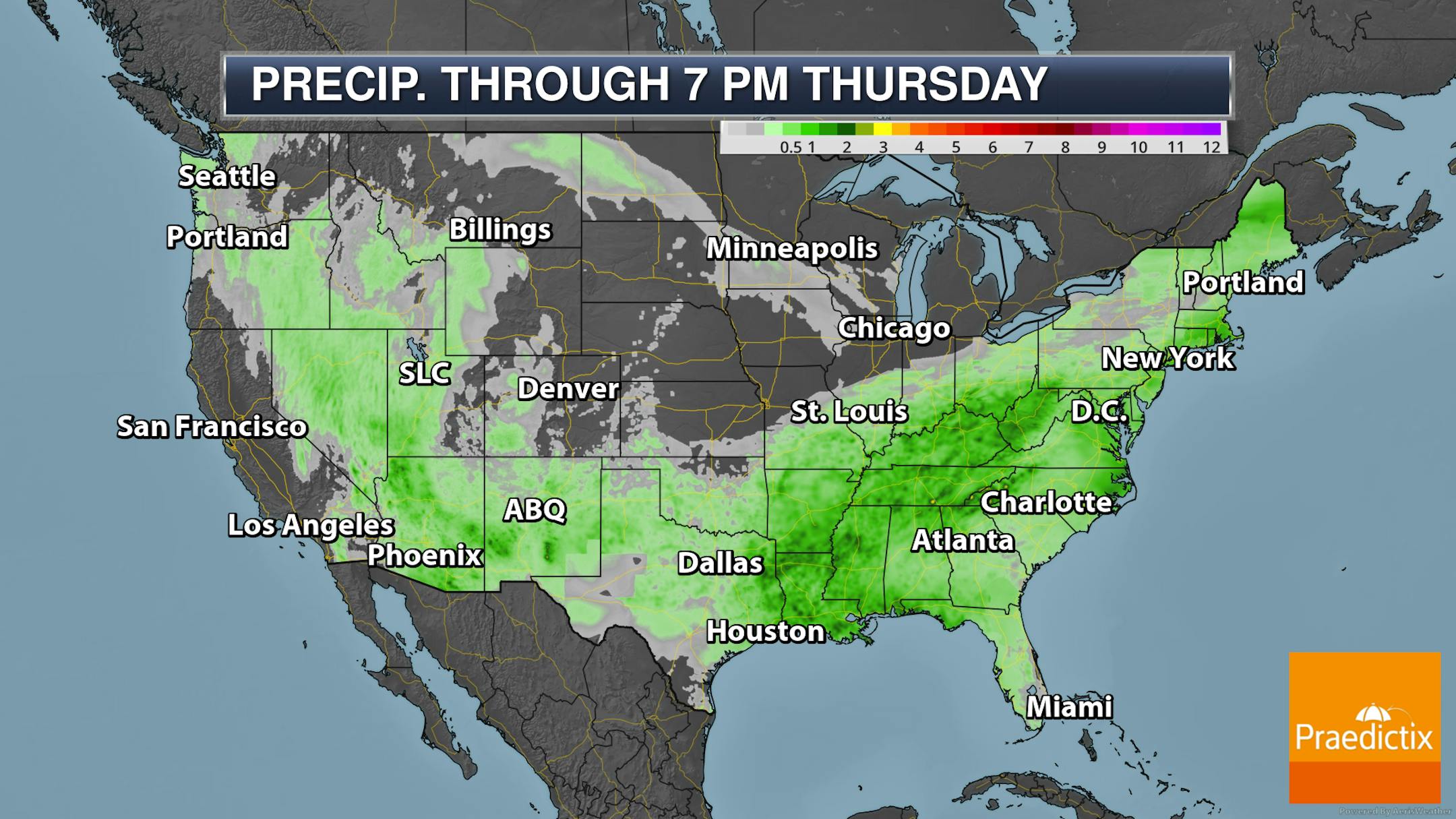 Weather Prediction Center rainfall forecast through 7 AM Saturday.