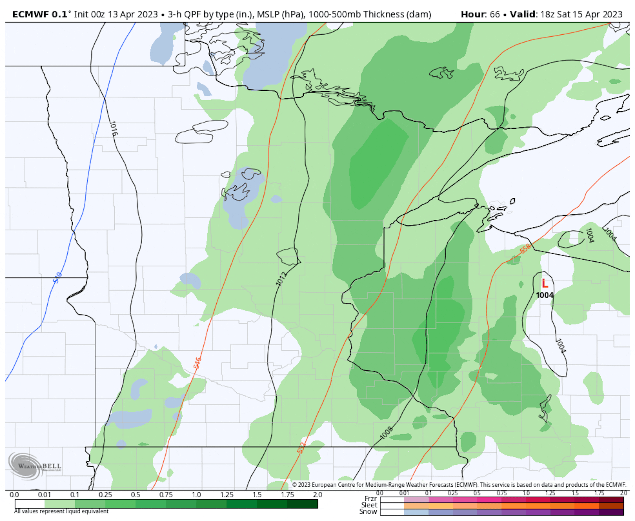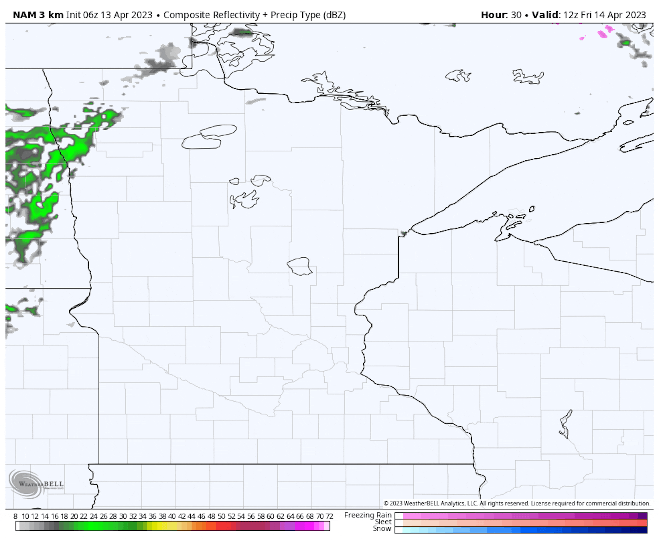 We will see precipitation chances moving east across the state late this week into the weekend, and I'm going to break this into two parts for easier explanation. Rain chances during the day Friday will be mainly limited to western Minnesota, with those chances moving east into the overnight hours (including the metro). A few storms will also be possible. Meanwhile, late Friday Night into Saturday morning some of the precipitation on the back side in western Minnesota will start to change over to wintry precipitation as cooler air moves in. This looks to mainly be in the form of either mixed rain/snow or some light snow.