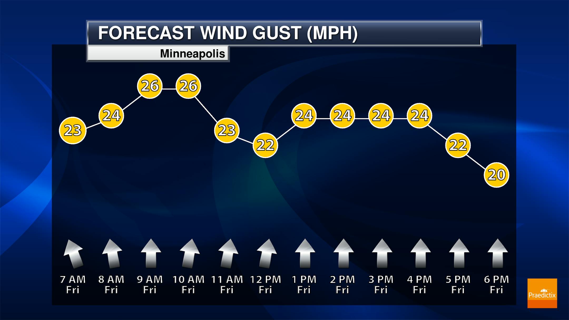 While it'll still be breezy - it won't be as breezy as it was Thursday either. Wind gusts up to around 25 mph can be expected out of the south throughout the day.