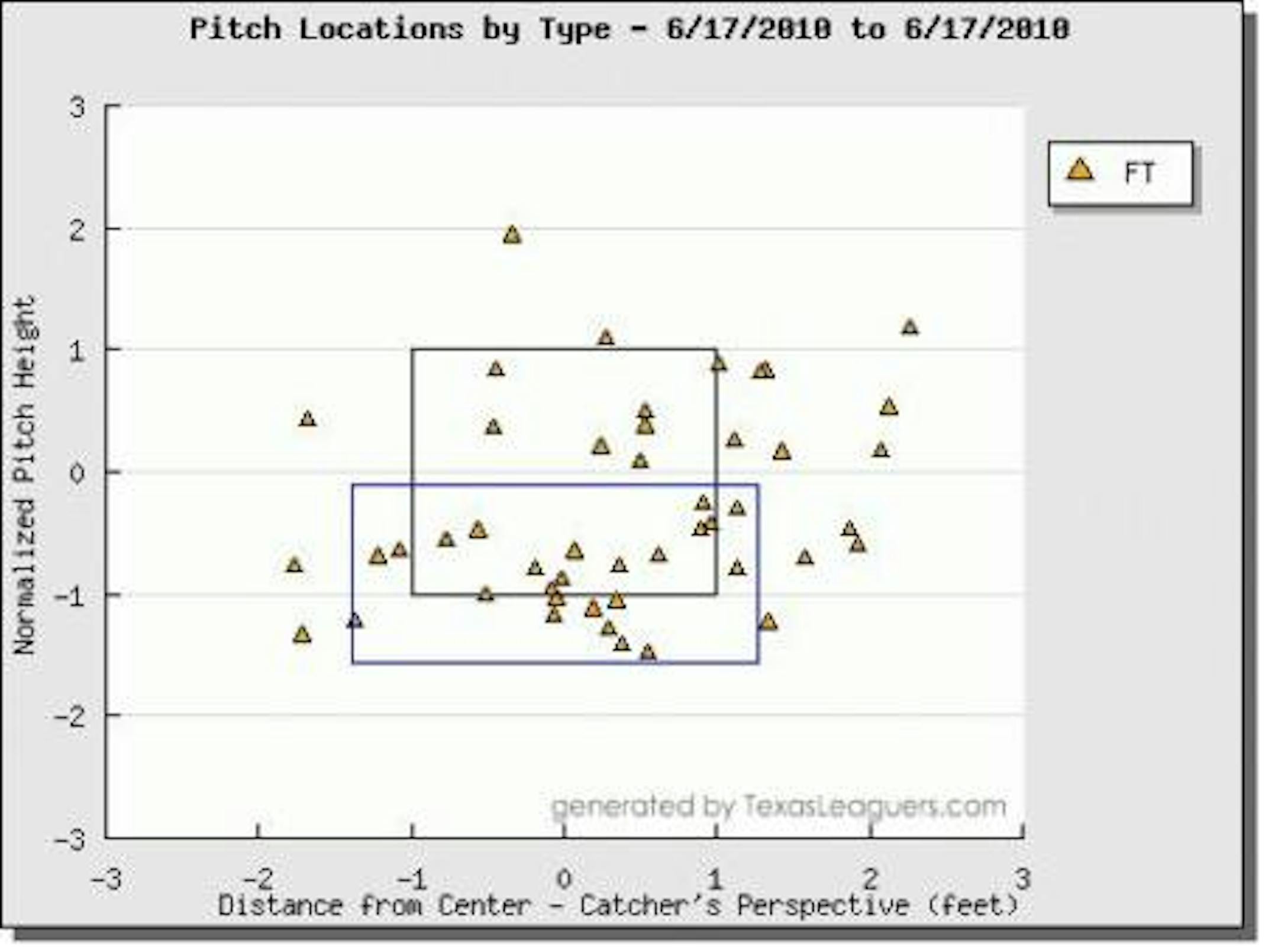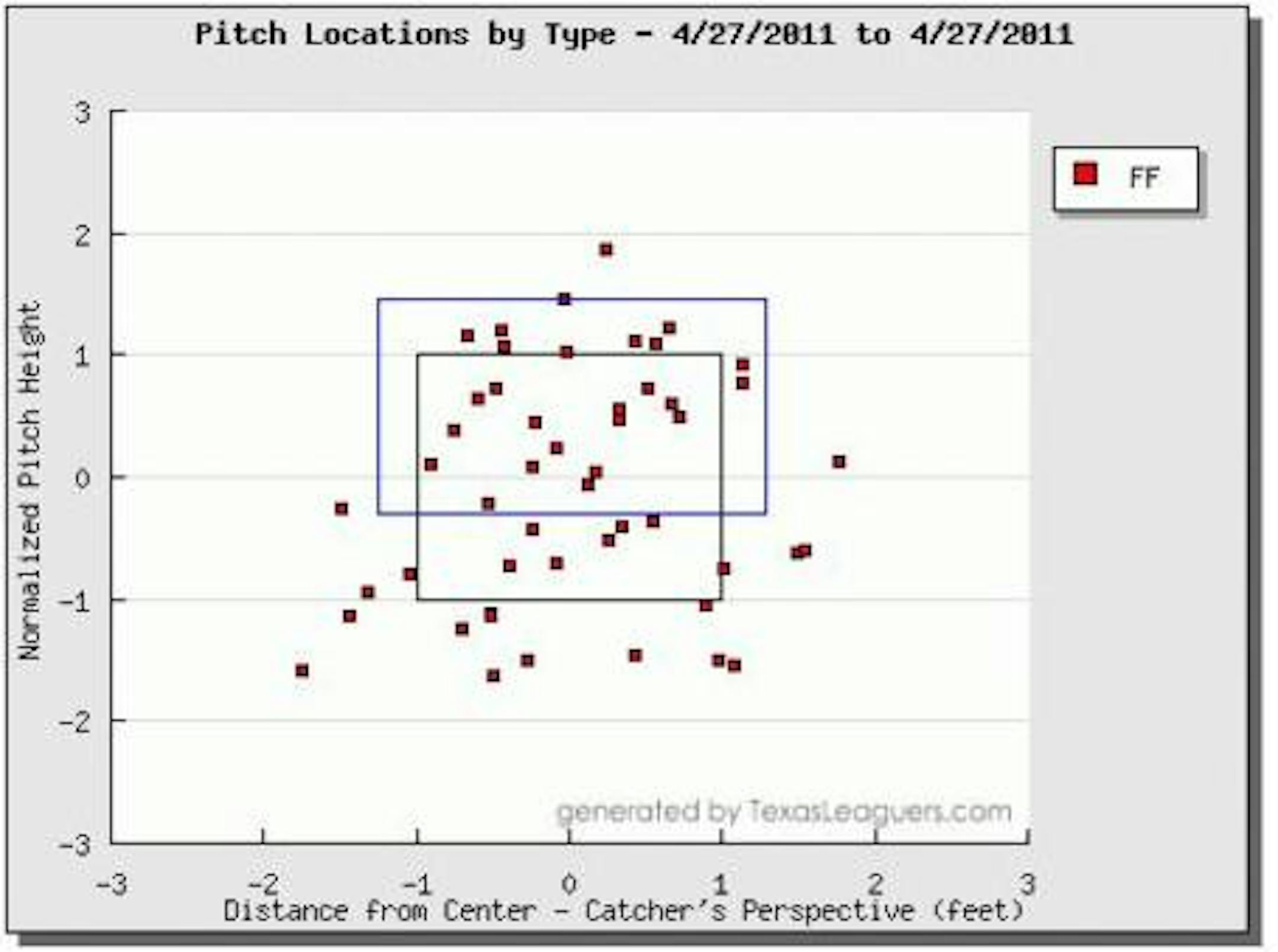 Here we can say that the bulk of his fastballs feel into the knee-high category. Once again, there are plenty of stray bullets around the strike zone but a vast majority finished low.