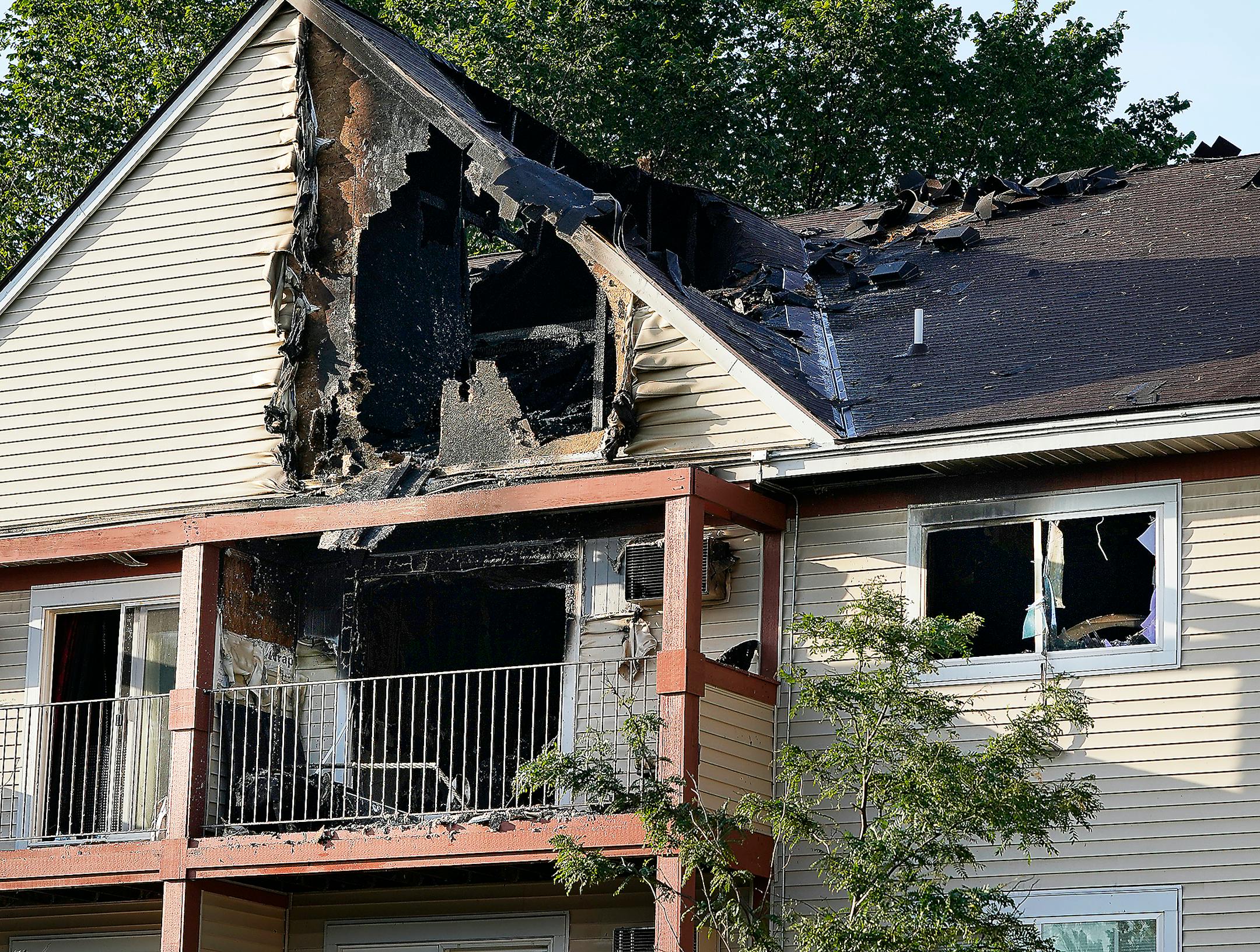Crews arrived at the scene just after 10 p.m. to find a fire on a third-floor balcony. Flames were shooting skyward and burned through the roof before firefighters were able to put it out, Rucker said.