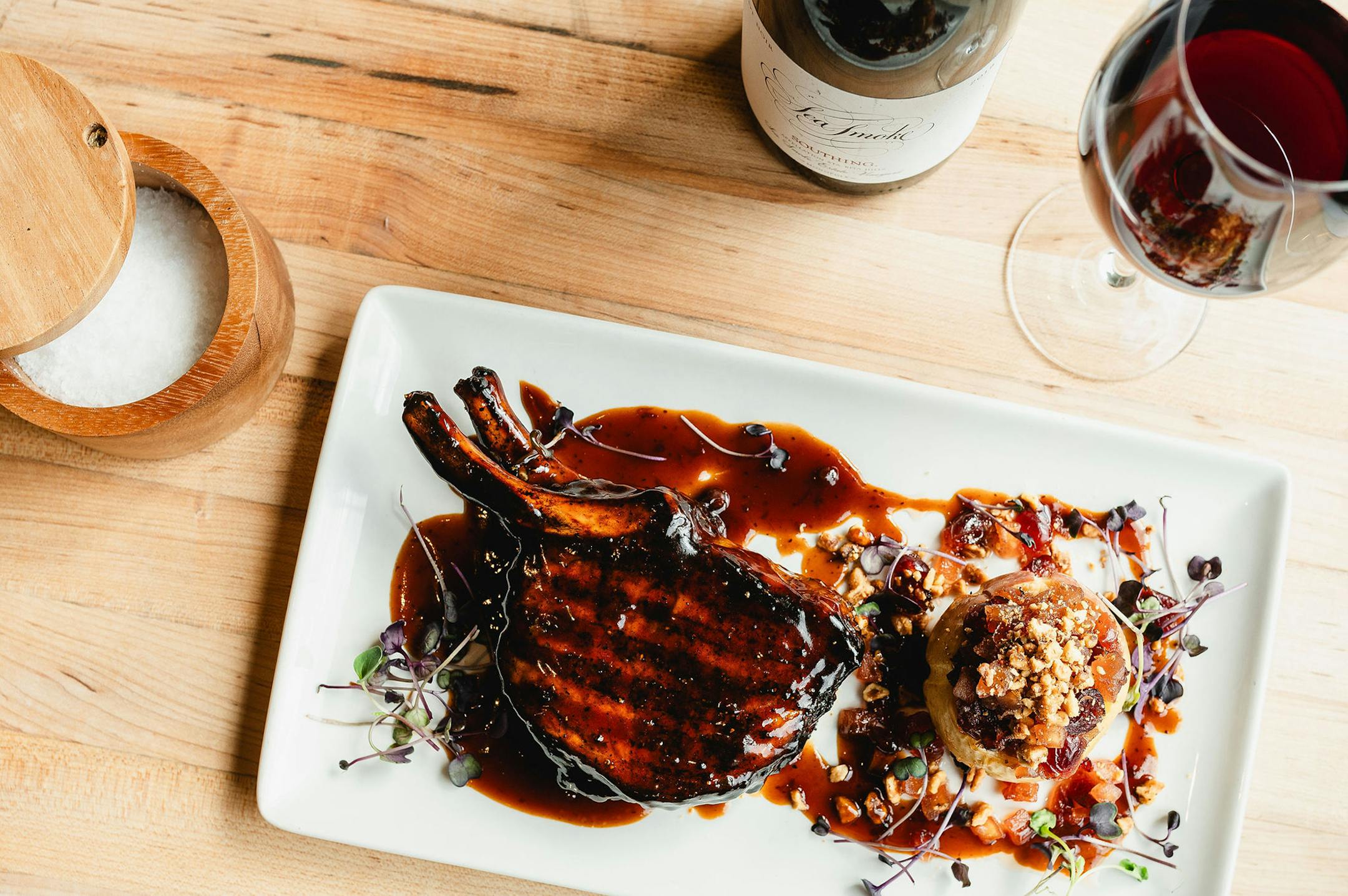 - 1 (14-oz.) Duroc pork chop, bone-in and frenched (see Note)