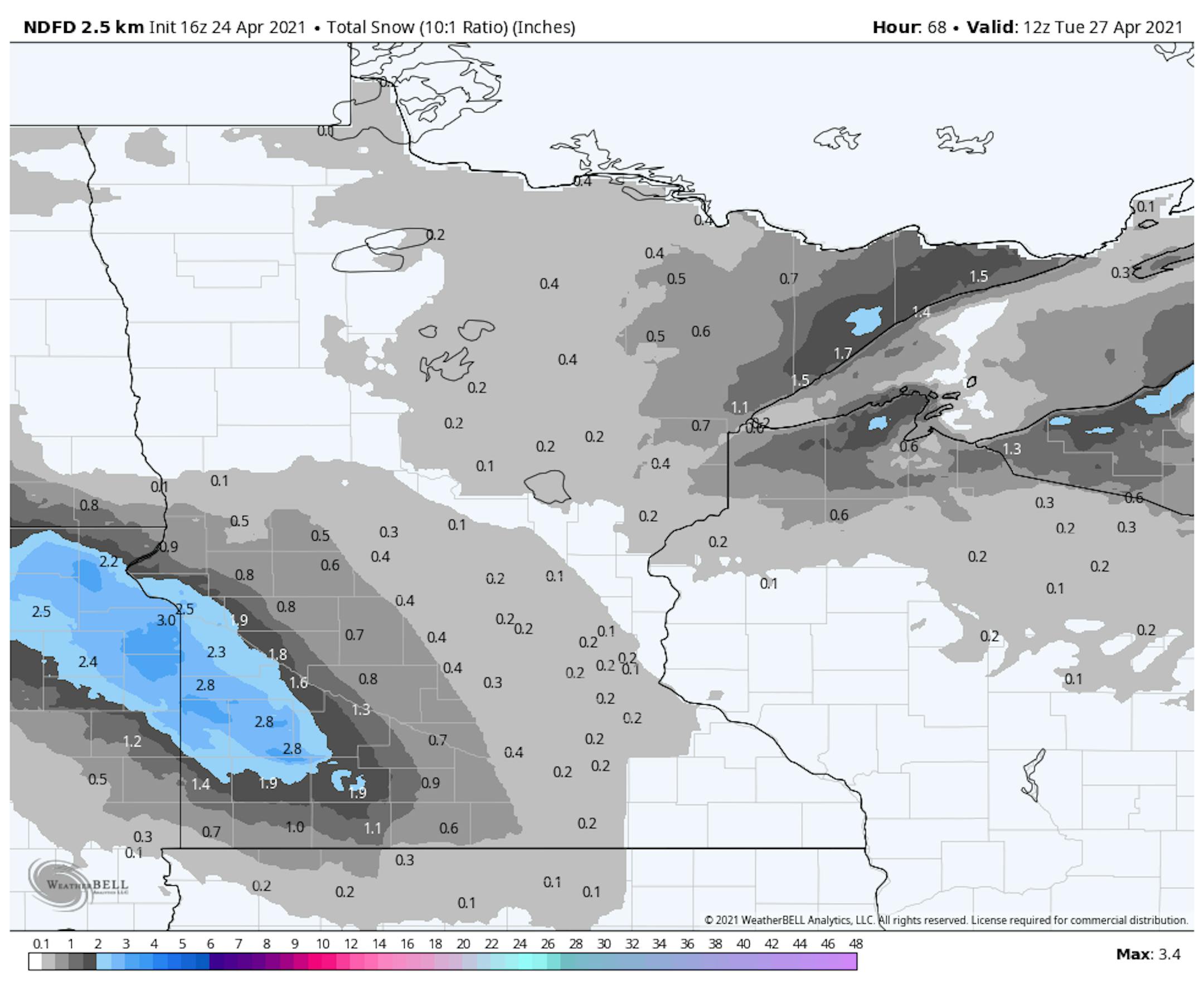 Here's NOAA's NDFD snowfall potential through the the weekend, which suggests minor accumulations south and west of the Twin Cities, where some 1" to 3" tallies can't be ruled out near the Minnesota River Valley.