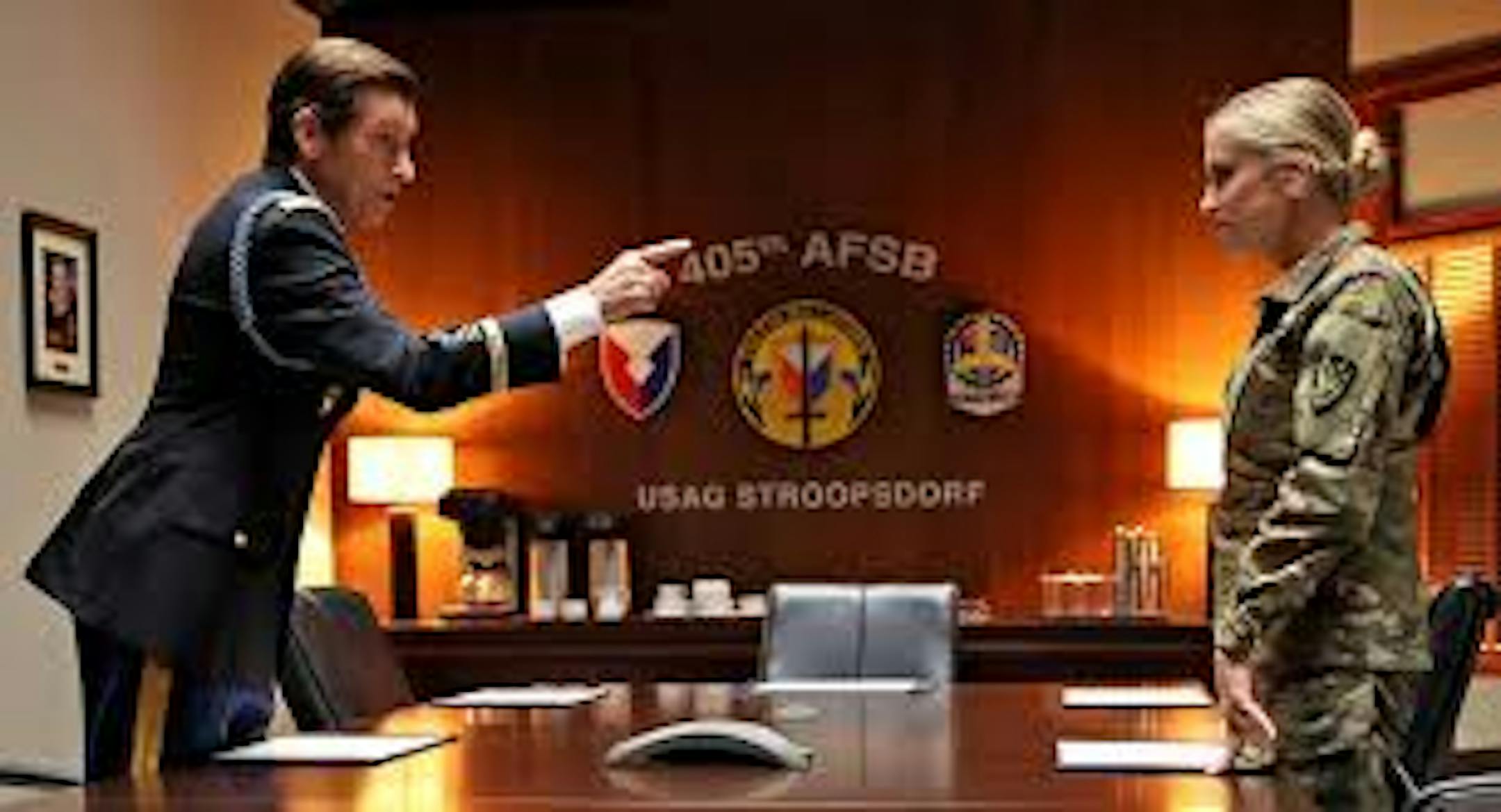 The base’s lack of discipline — nobody salutes, but they might wave — offends his aggressive sense of order, readiness and army life. He becomes even unhappier when he discovers that his estranged daughter, Capt. Maggie Quinn (Taylor Misiak), is in charge of the post as interim commander. They have issues, amplified by having not seen one another in many years and Quinn’s not wanting to admit they have them.