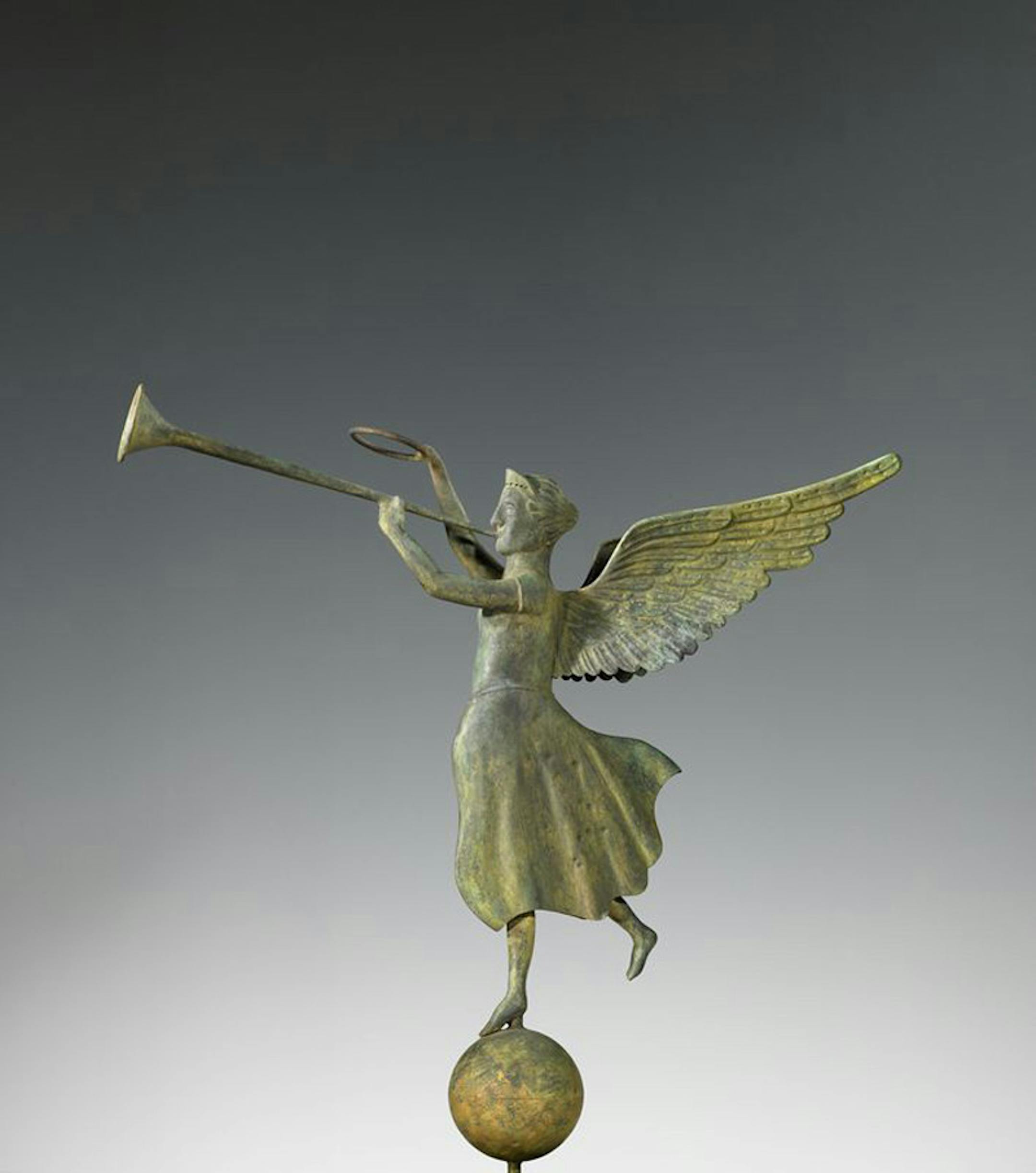 Fashioned of sturdy metal -- copper, zinc, iron -- and sometimes painted or covered in gold leaf, the vanes once crowned hotels, churches, barns and other buildings throughout the United States. Designed to spin on a rod, they typically have a broad tail or torso balanced by a small, weighted head that pivots to face into the wind.