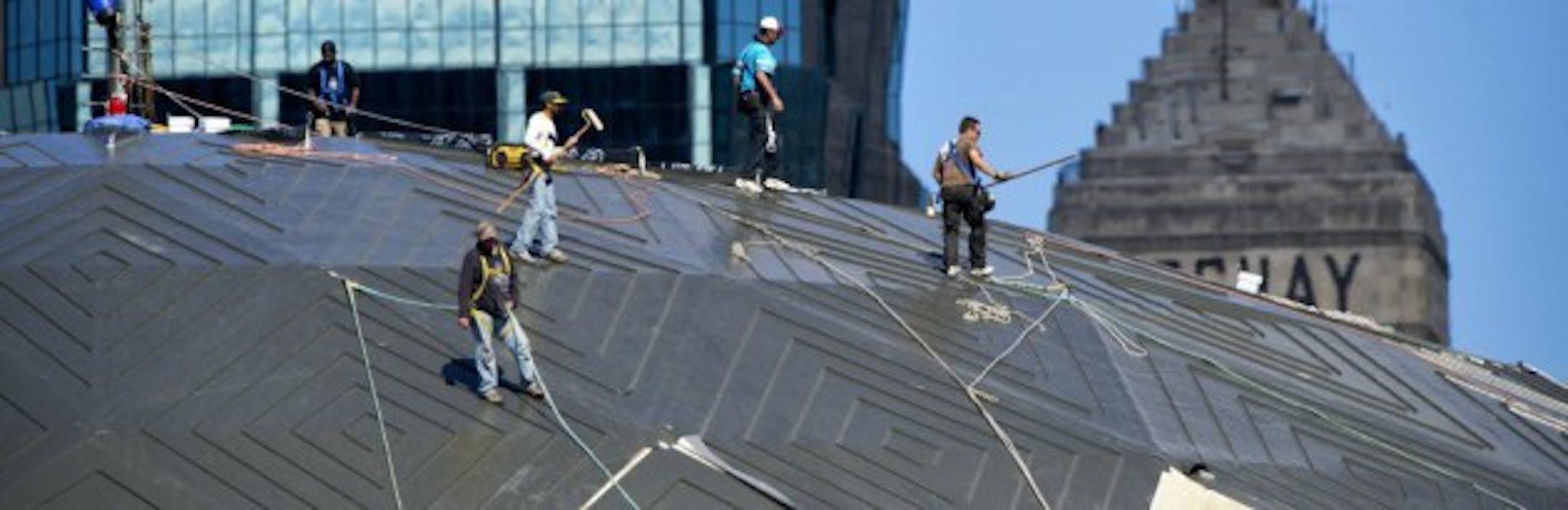 Photo: Workers repairing the roof in September 2012 (Glen Stubbe)