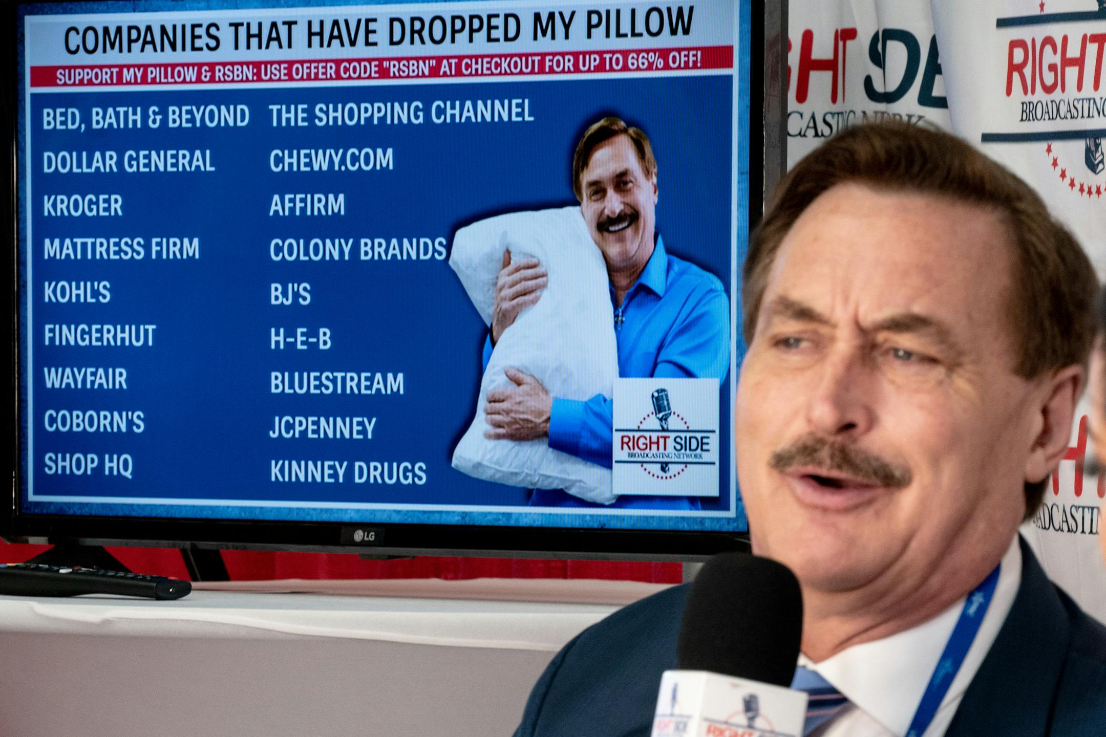 "Basically, it's a reaction to these horrible box stores that decided they would cancel MyPillow," he told an editorial writer.