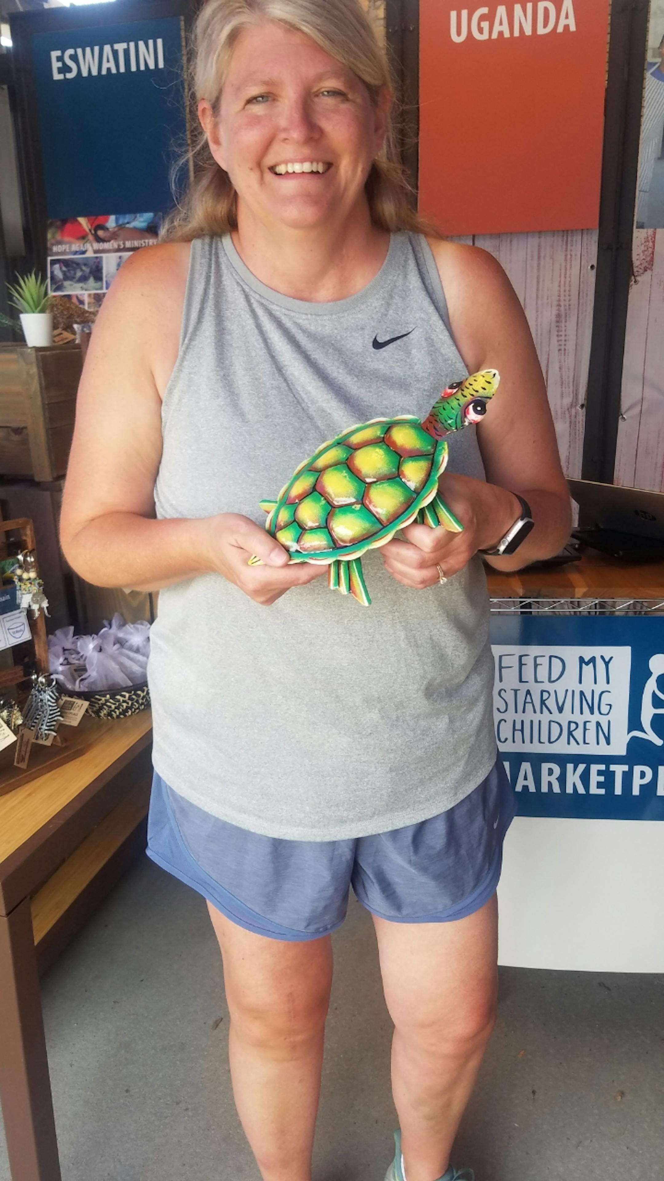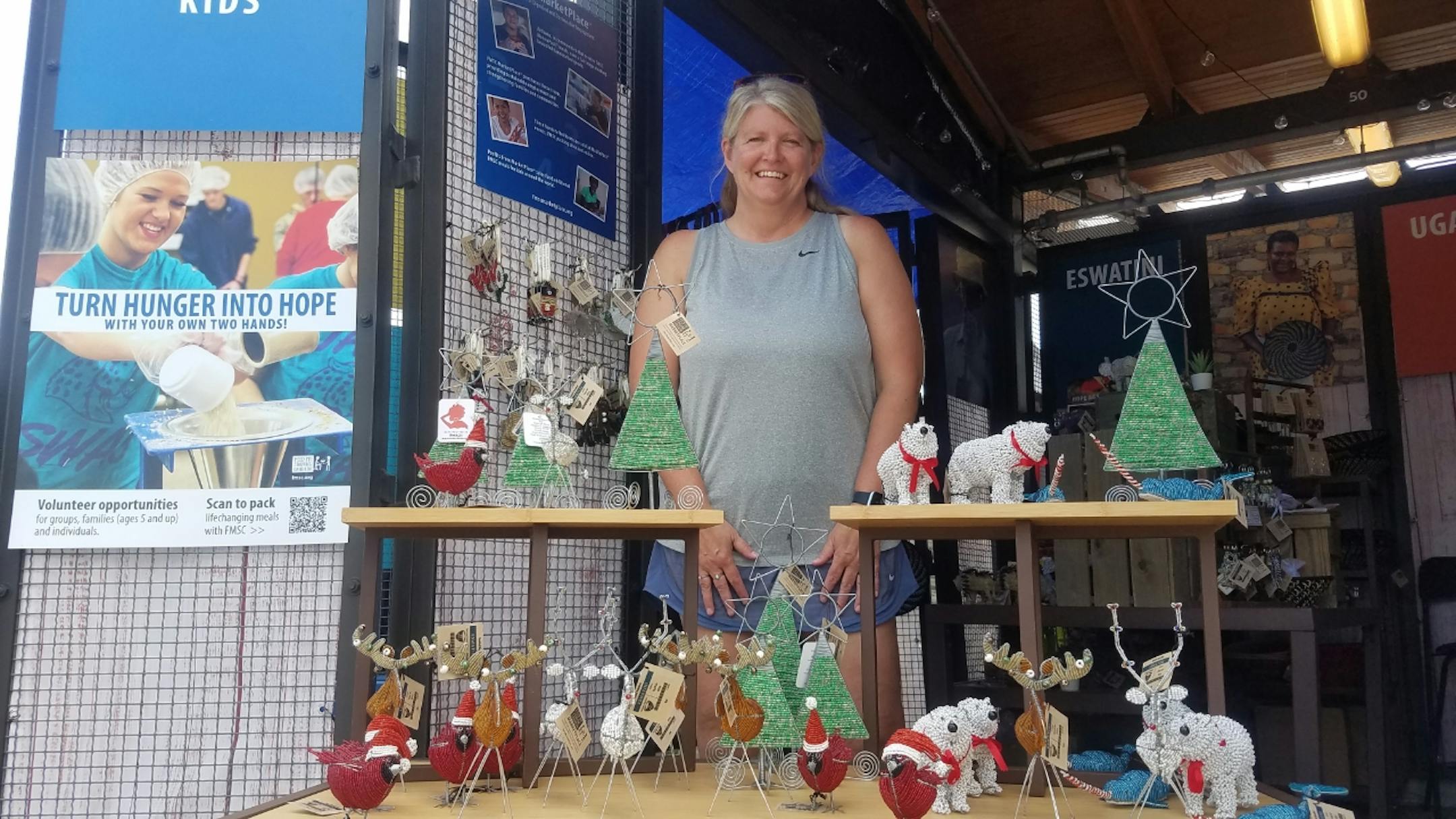 "I felt like we won the lottery," Peterson said last week as she finished organizing space No. 50 in the West End Market, where the nonprofit planned to sell clay coffee mugs from Haiti, woven grass baskets made by women in Uganda and colorful creations made out of recycled oil drums to raise money to provide meals for kids around the globe.