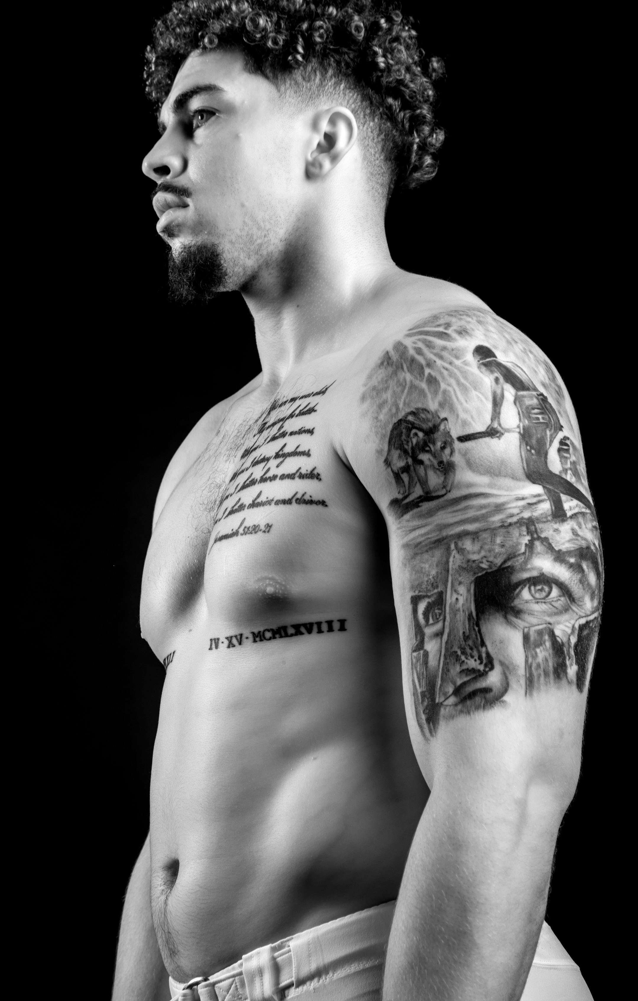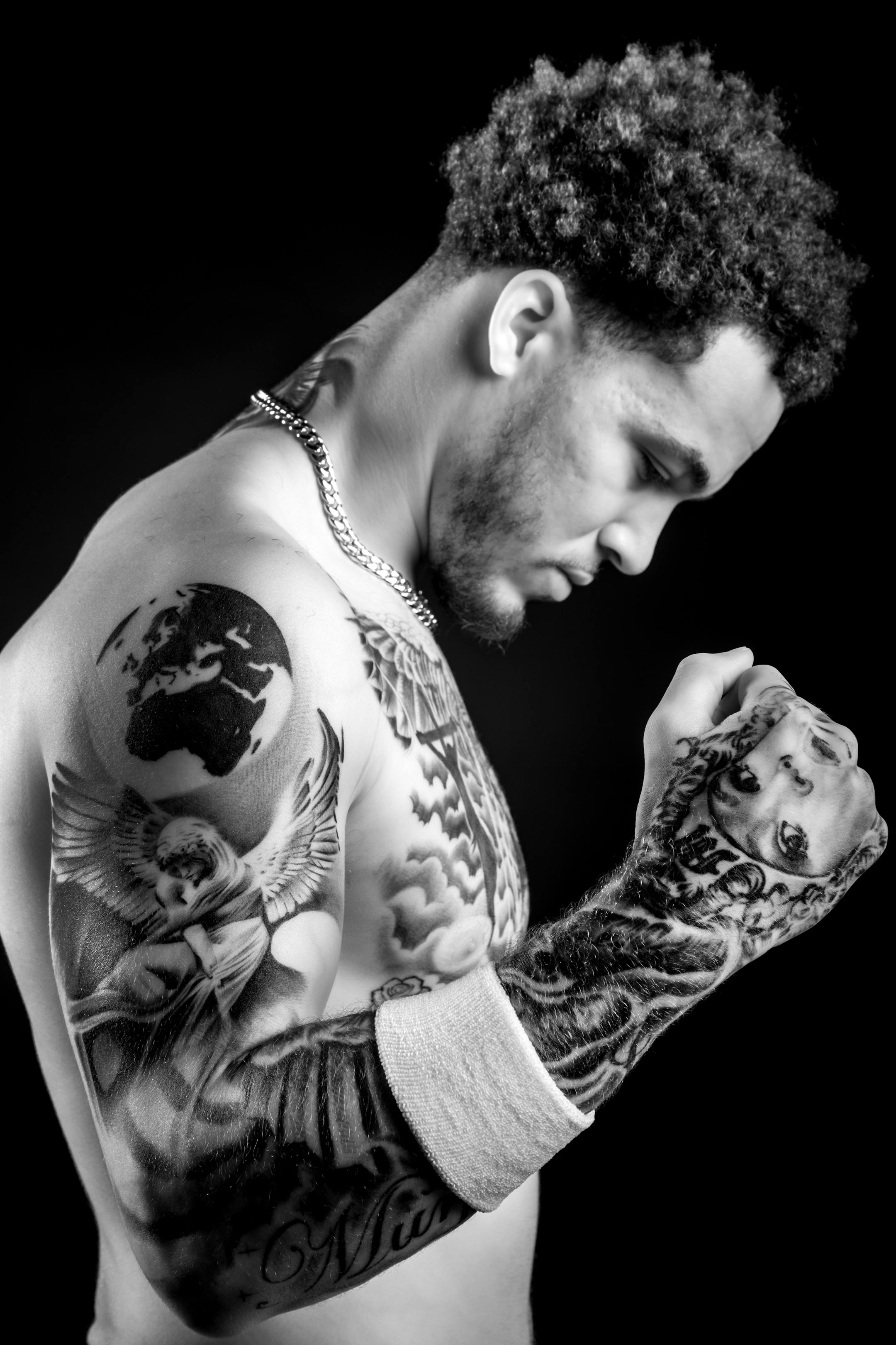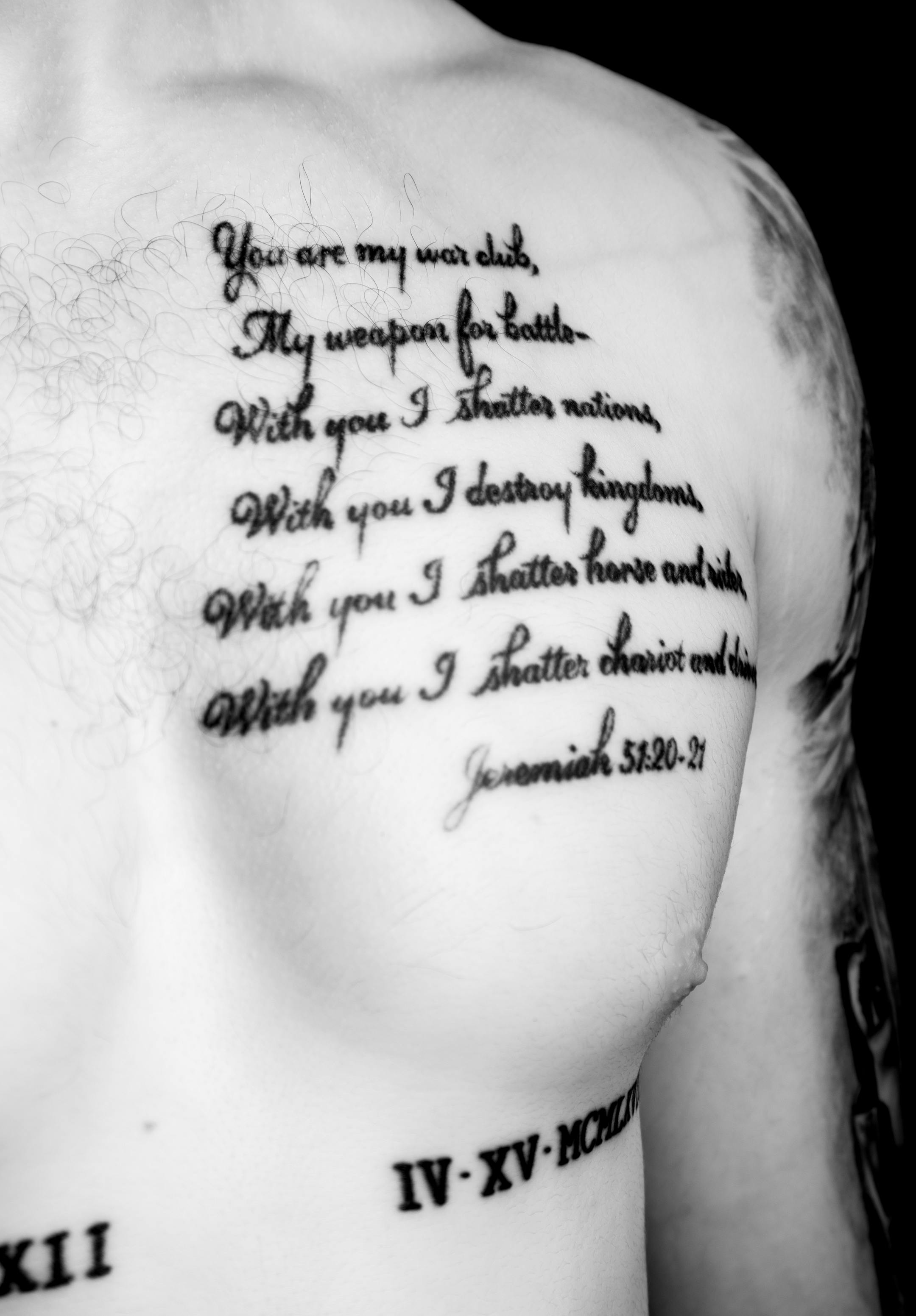 "The portrait on my hand is probably the best tattoo I have. That right arm sleeve is probably my favorite."