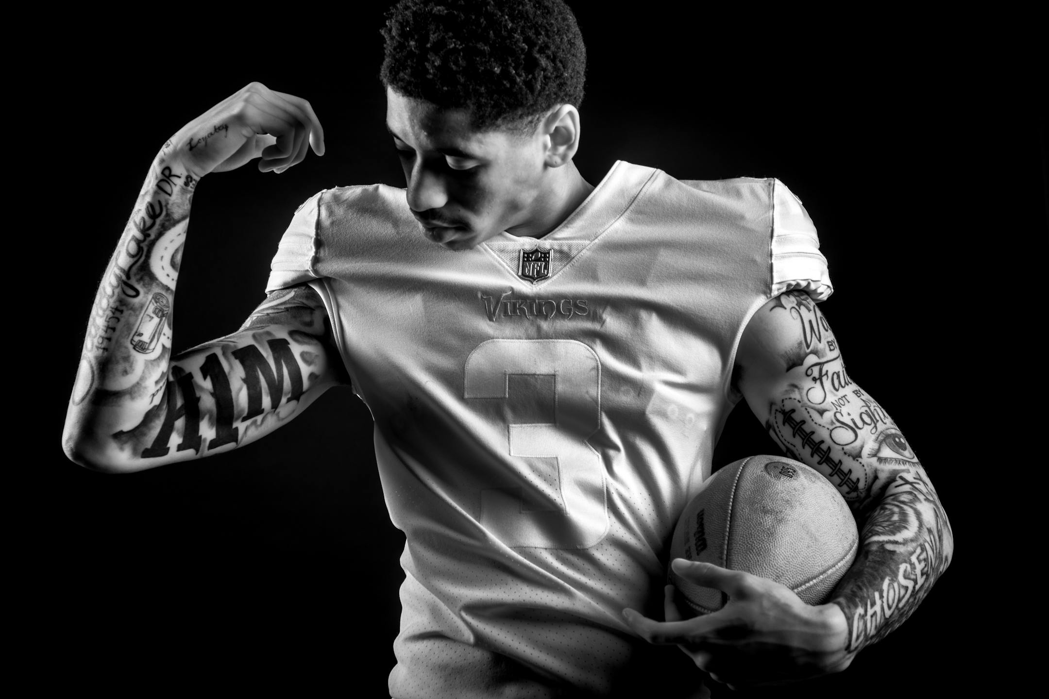 Earlier this year, Star Tribune photographer Carlos Gonzalez shot portraits of Vikings players with an infrared camera that would show their tattoos in greater detail. We then talked with many of those players about the meaning and significance of their tattoos. Here are their stories.