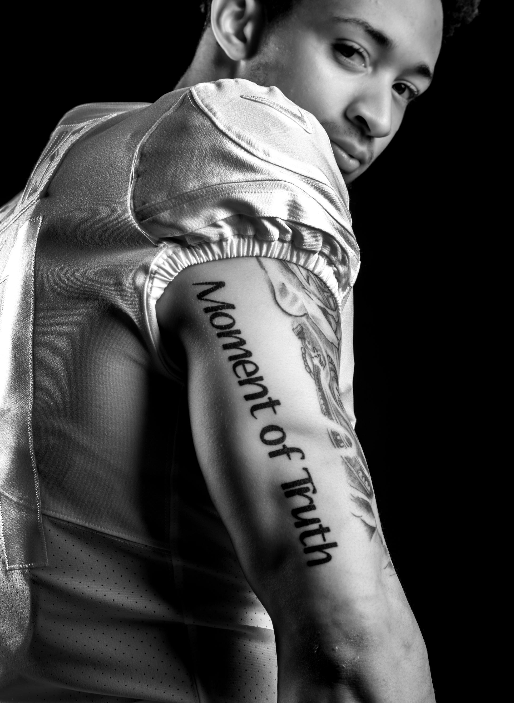The running back brings his sketches to his California-based tattoo artist, who's responsible for making Mattison's ideas come to life. The butterflies on his upper left arm, which are also prominently featured in his I Am Gifted brand, "have come to mean a lot to me across my own mental health journey," Mattison said. A Lisfranc injury, the death of a close friend and a dispute with a professor nearly led him to quit football at Boise State, until he worked with team chaplain Mark Thornton on managing the stress in his life. "It's kind of the whole process of a butterfly, just growing, and signifying life and being free from all the burdens," Mattison said.