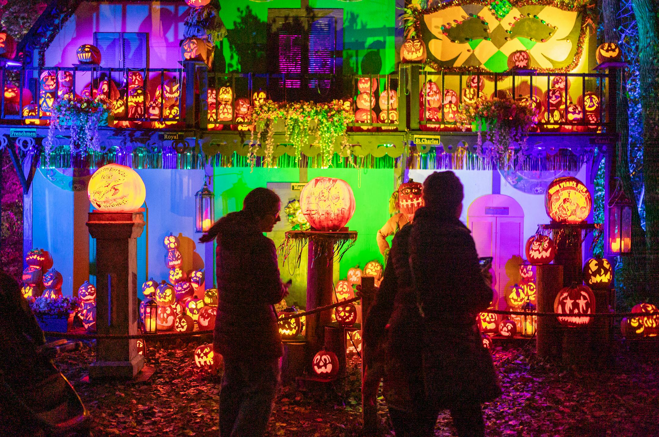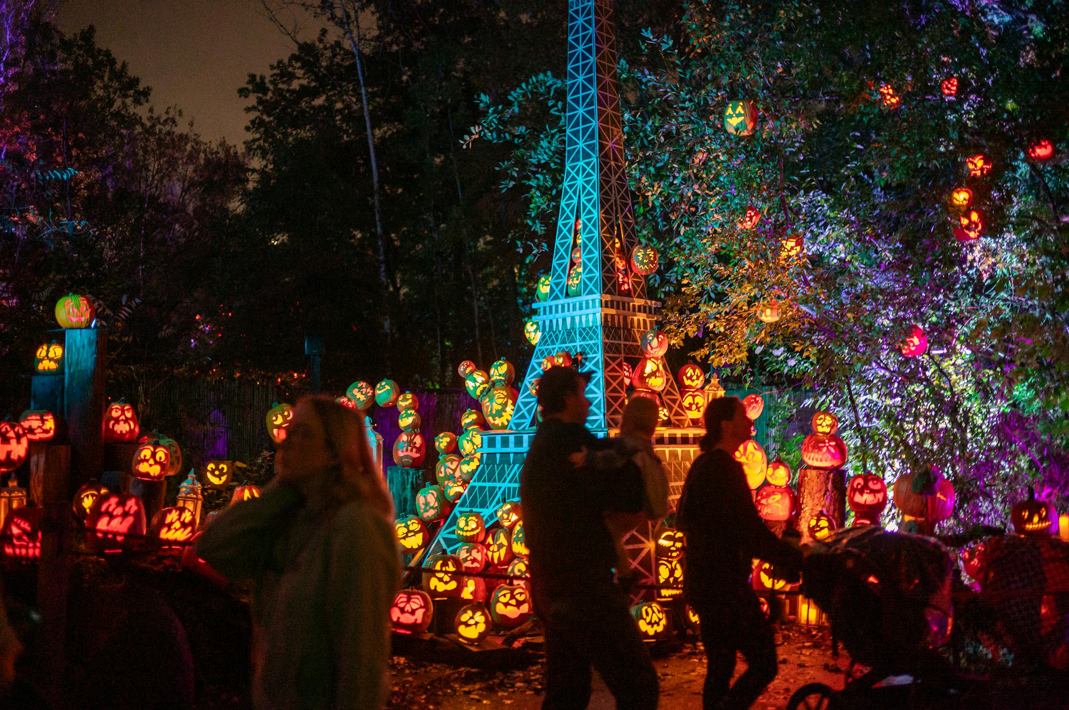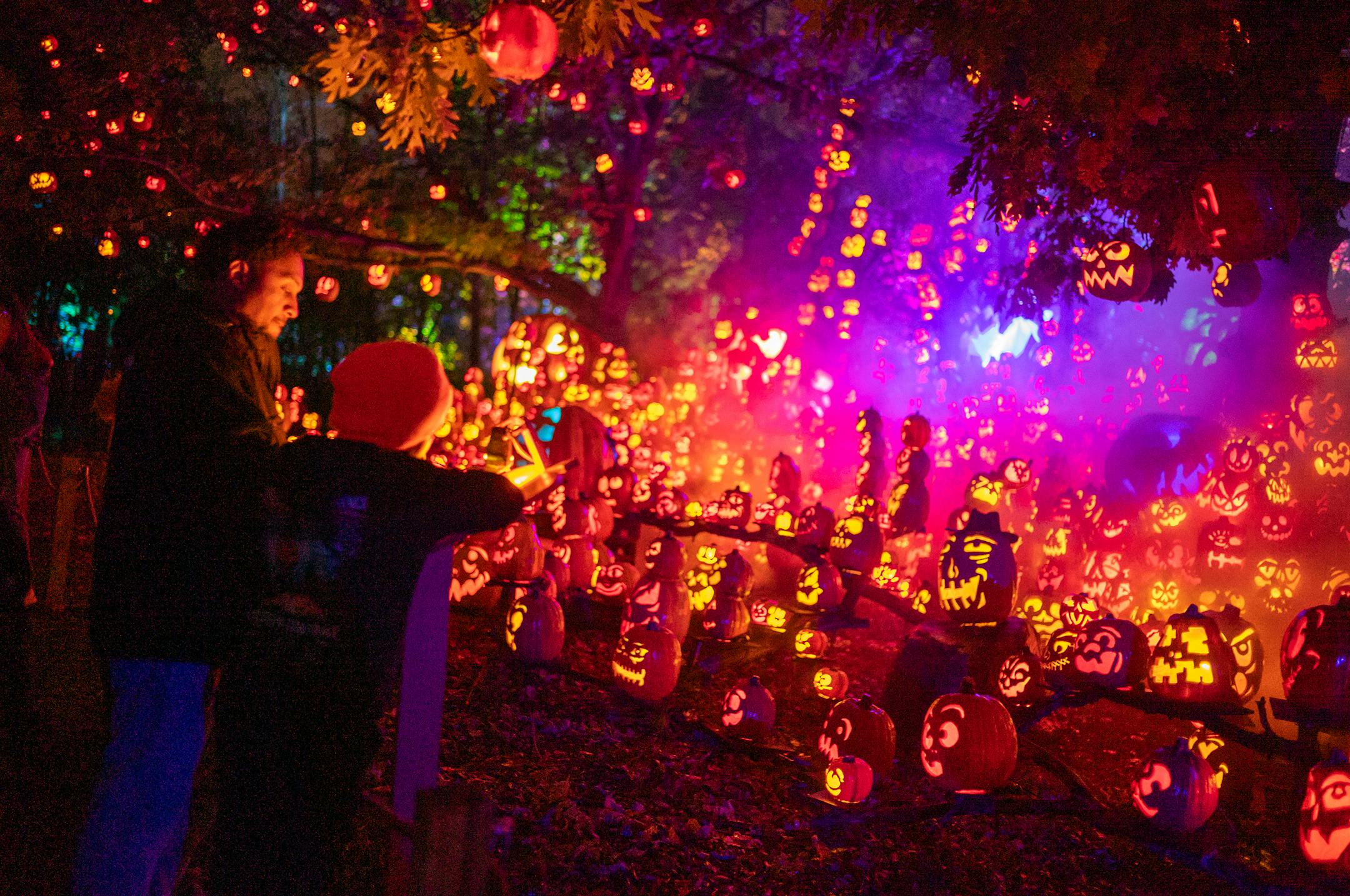 Twenty artists make 7,000 pumpkins throughout the five-week run. At any given time, 5,000 light up the one-way trail, including some artificial ones in difficult-to-reach locations.