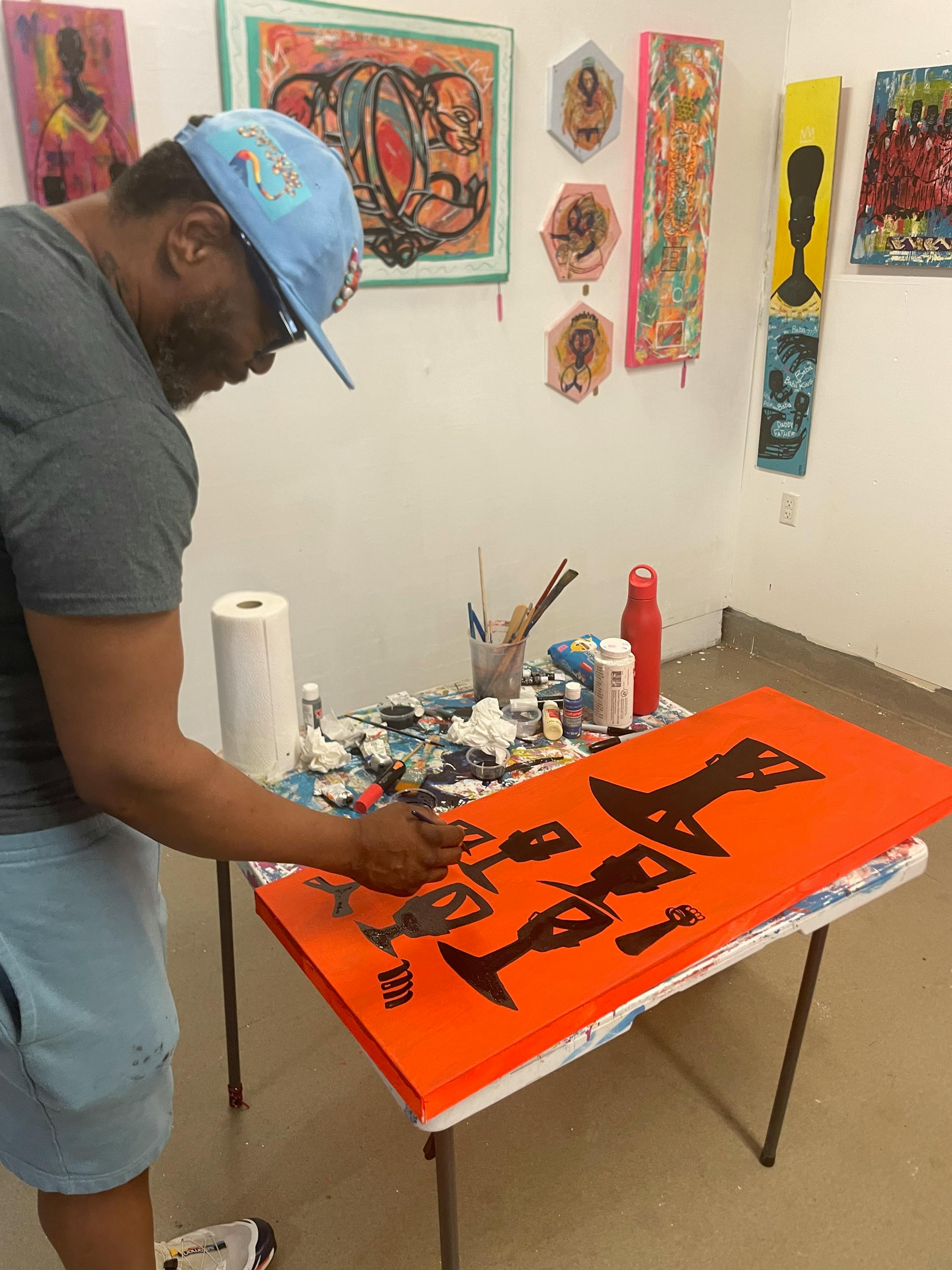 A busy artist and father of five, Brown works at Perpich Arts High School as the dorm coordinator for resident services. Originally from Gary, Ind., Brown’s artwork is rooted in Afrofuturism, which blends African culture with science fiction and speculative future.