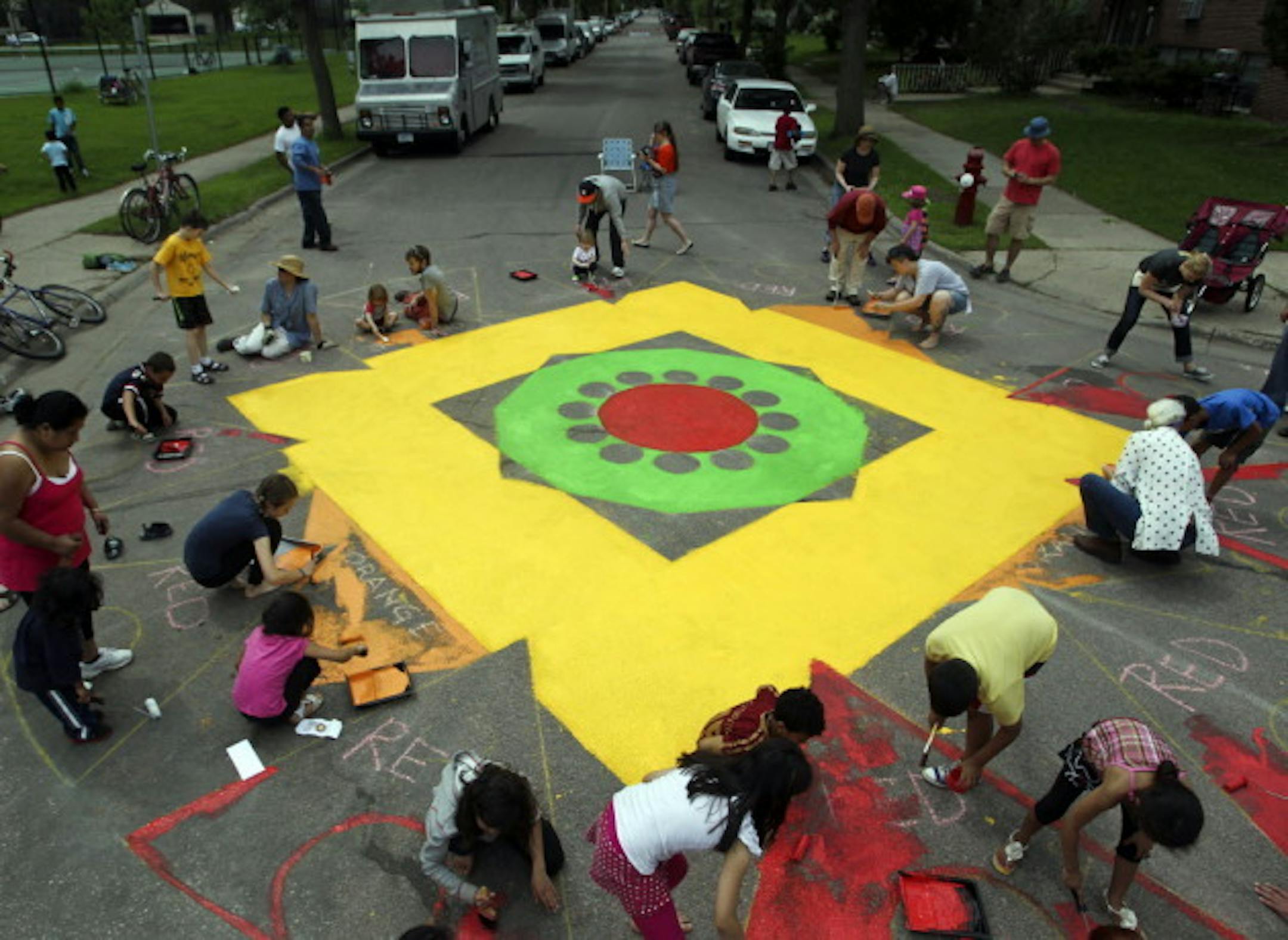 A "Paint the Pavement" project drew lots of neighborhood participation during last year's first Arts on Chicago program. It's coming back this summer. Photo by David Joles.