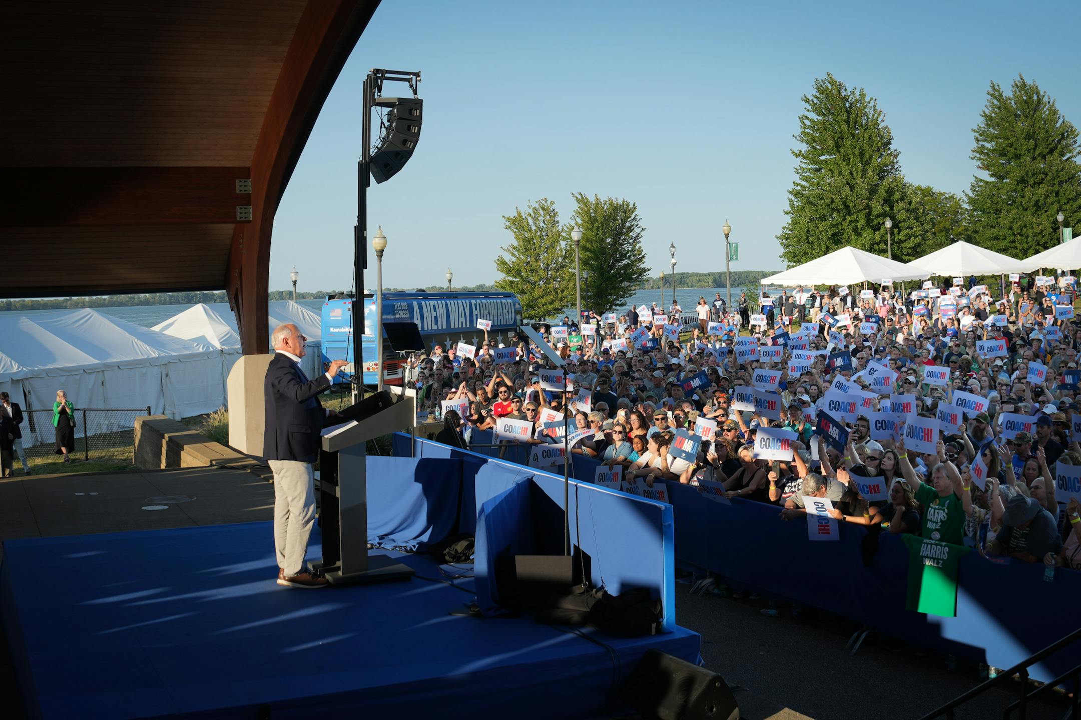 Gov. Tim Walz speaks at a rally on the Erie waterfront in front of around 2000 supporters Thursday, Sept. 5, 2024 Erie, Pa. (Glen Stubbe)